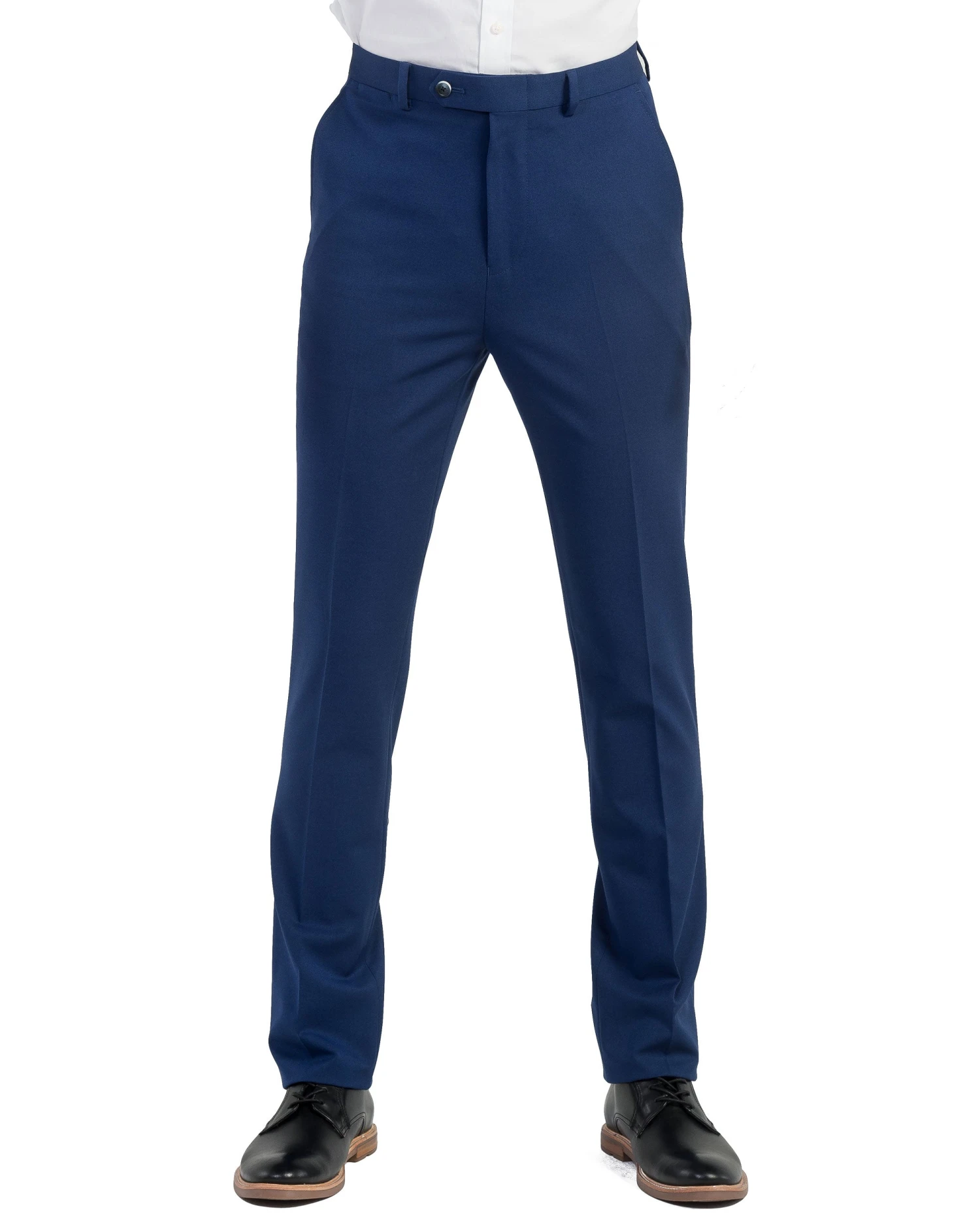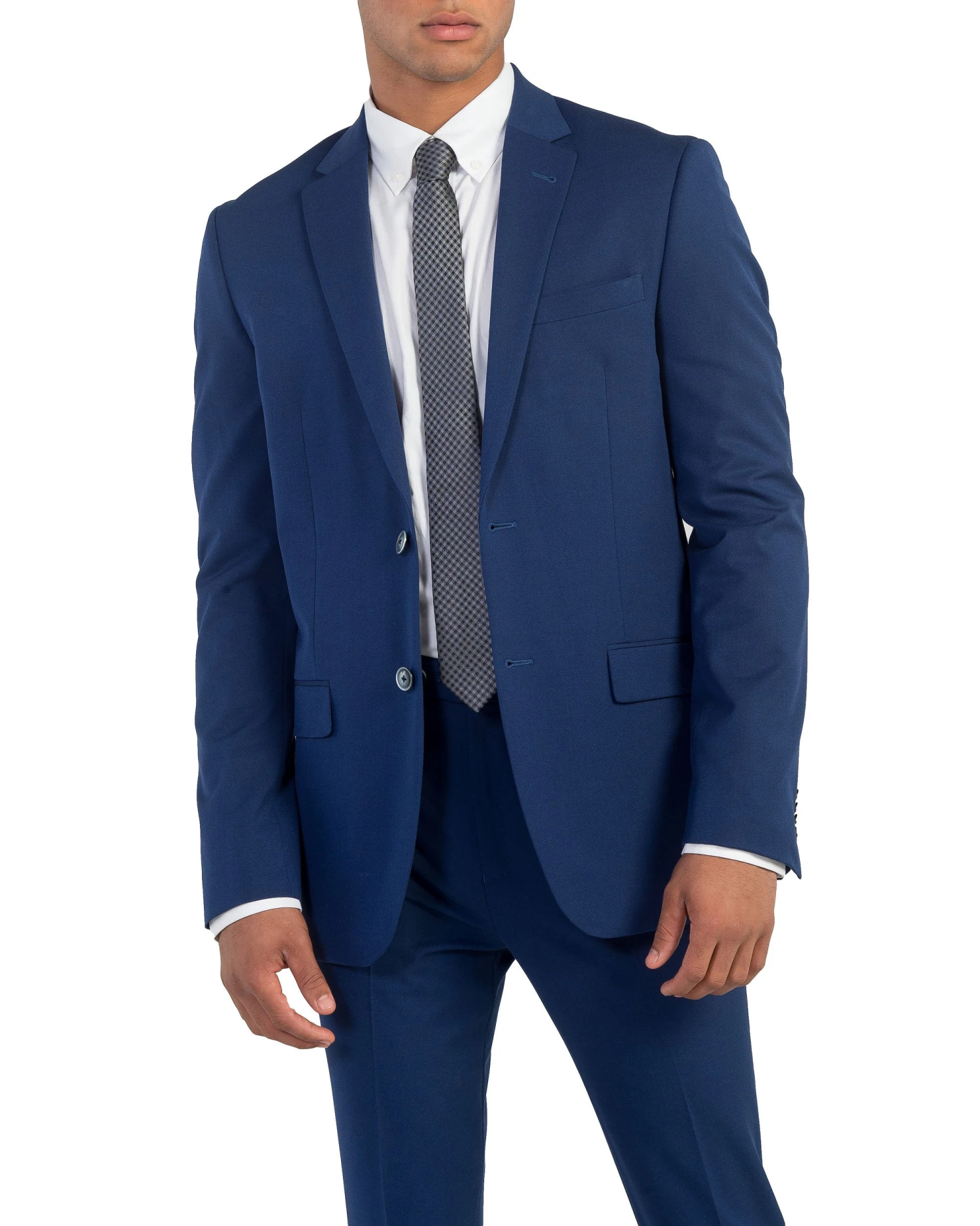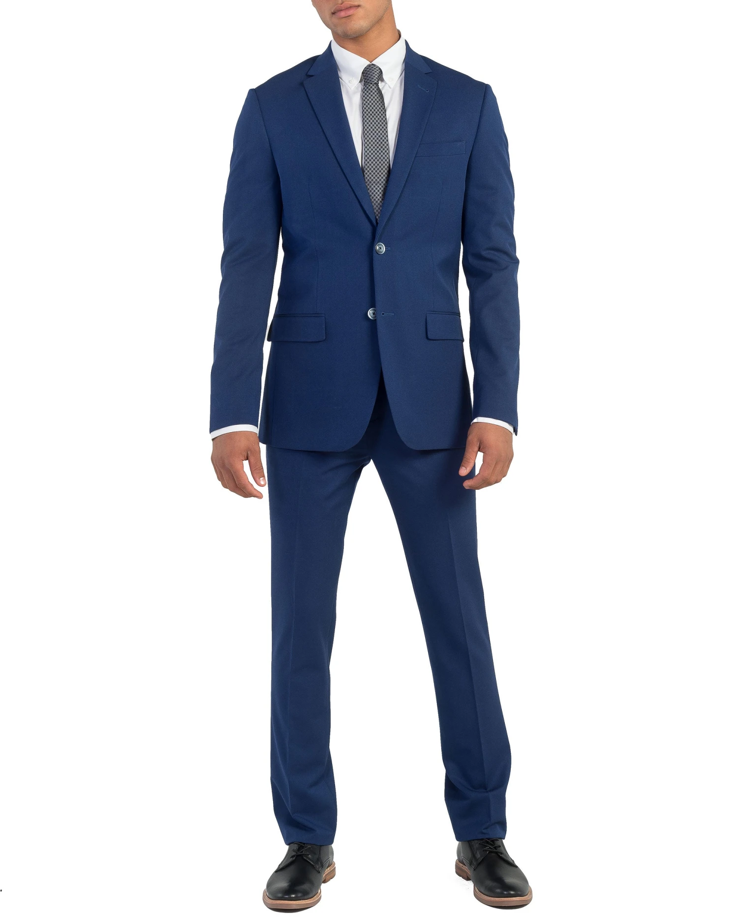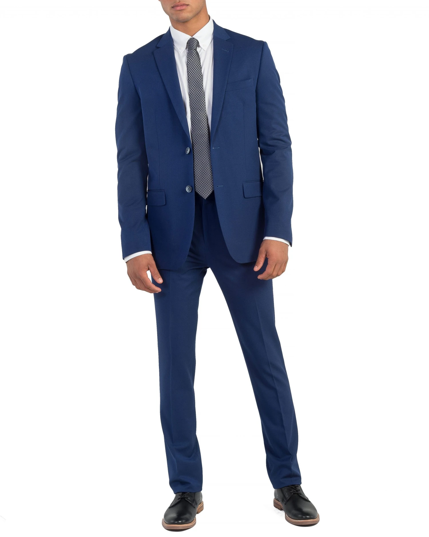 Bell Bi-Stretch Two-Button Side Vent Suit in Blue. The Bell is a slim fit, nested suit. It features tapered trousers with a very natural shoulder for on-trend tailoring perfection. Slightly shorter jacket length adds to the sharp, modern look.