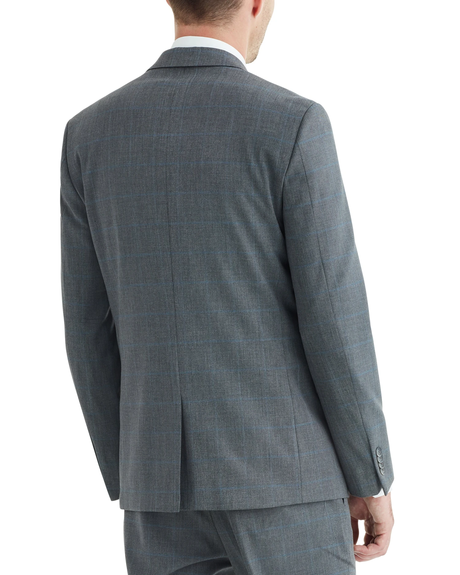 Burge Bi-Stretch Two-Button Notch Lapel Jacket in Grey. The Burge is a bi-stretch two-button suit jacket separate with slim silhouette and notch lapel and center vent. Complete your look with the coordinating Burge suit pants.