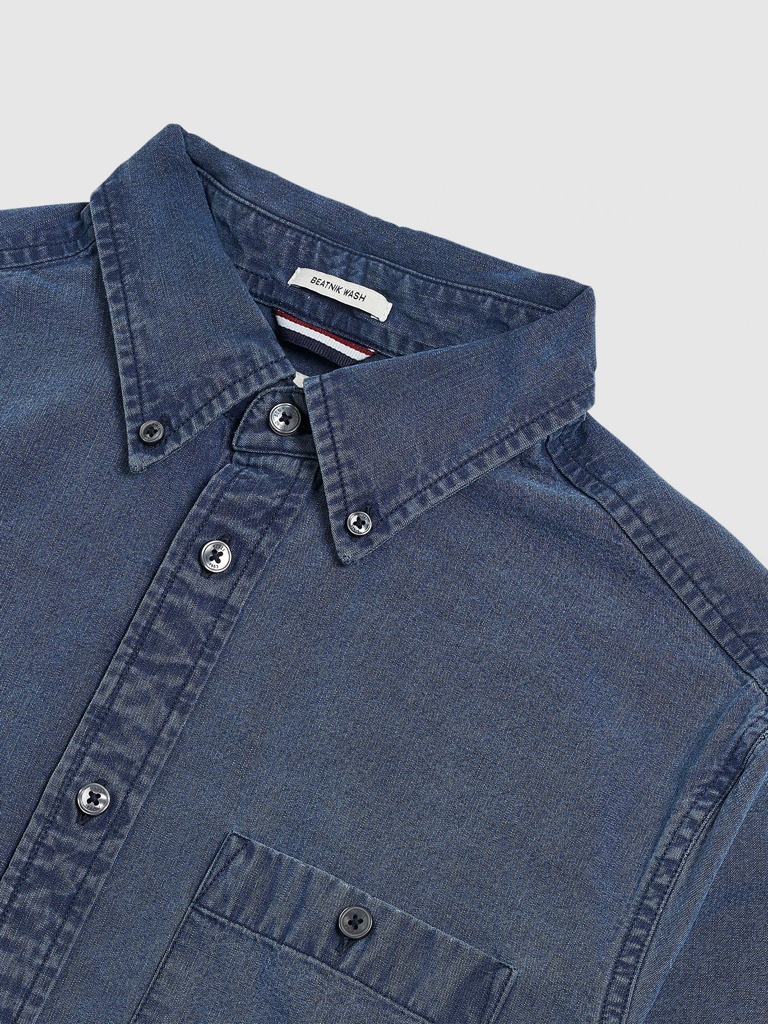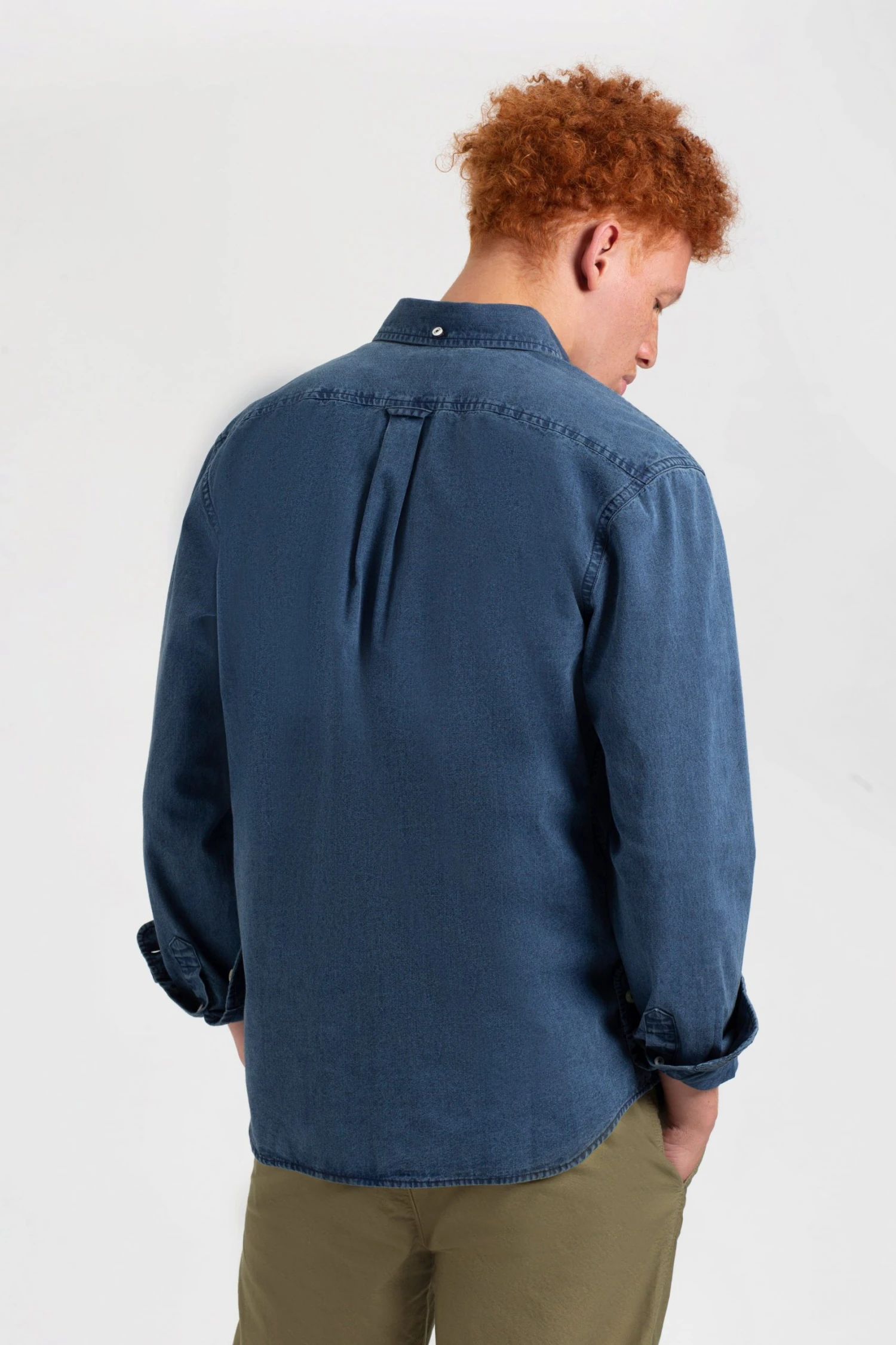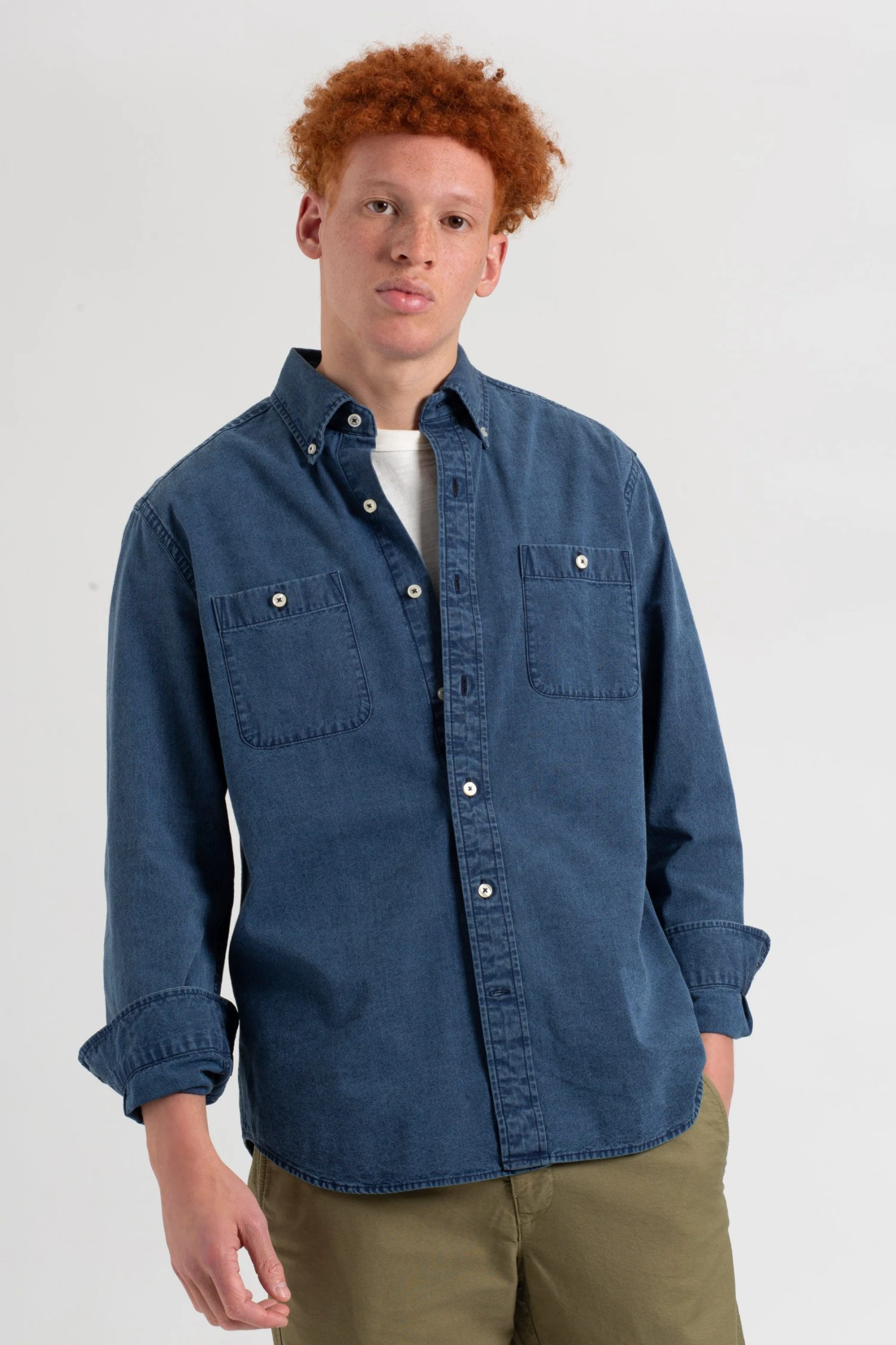 This shirt is cut from a mid-weight denim and is styled with double workwear pockets.