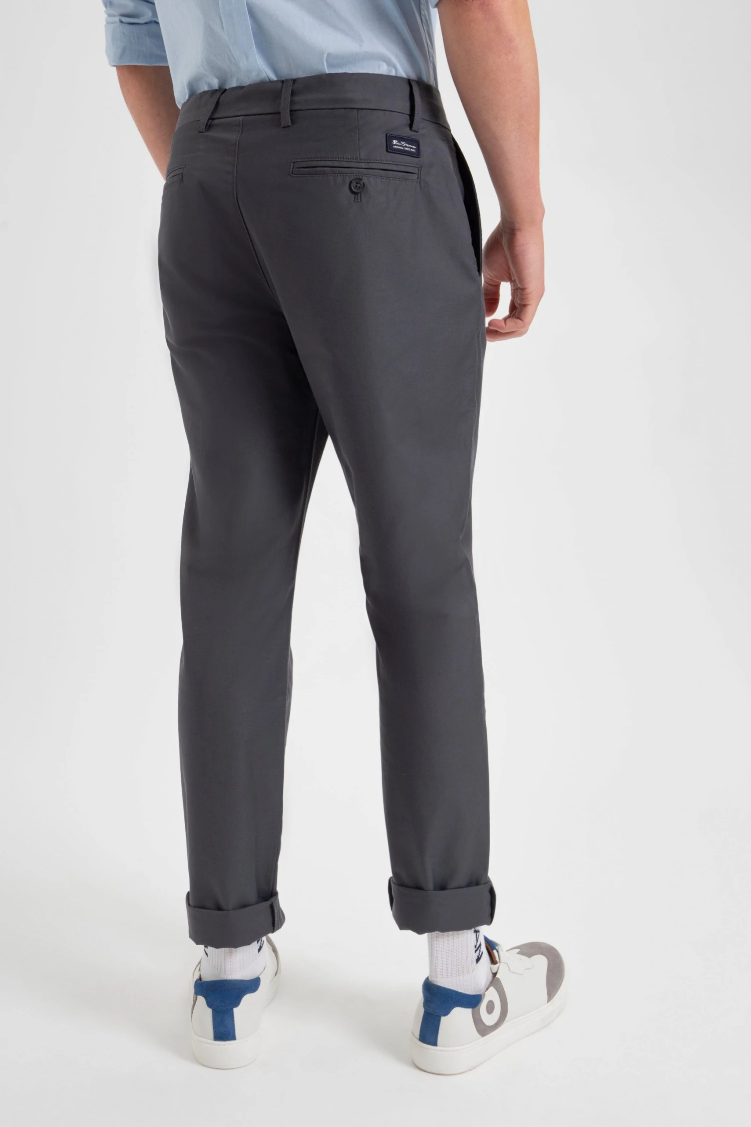 An update to our slim fit chino, made better with a performance cotton and nylon blend that allows for a super soft touch and higher level of comfort. This chino has a small amount of stretch in both the base fabric and the waist band for even more flexibility. It’s cut in a modern slim leg with classic chino styling, including welt back pockets and mod stripe detailing. Available in give classic colors.