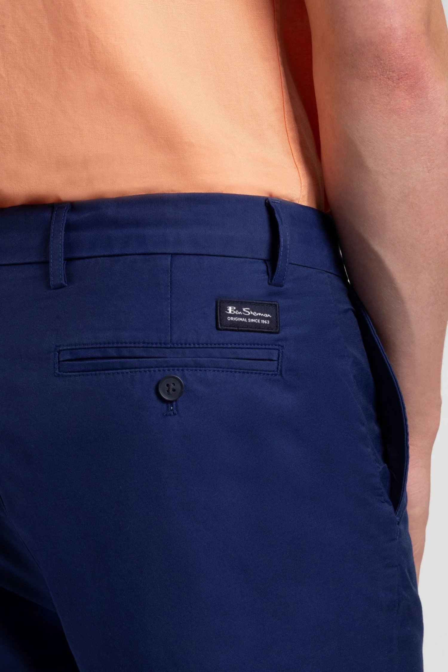 An update to our slim fit chino short, made better with a performance cotton and nylon blend that allows for a super soft touch and higher level of comfort. This chino has a small amount of stretch in both the base fabric and the waist band for even more flexibility. It’s cut in a modern slim leg with classic chino styling, including welt back pockets and mod stripe detailing. Available in give classic colors.