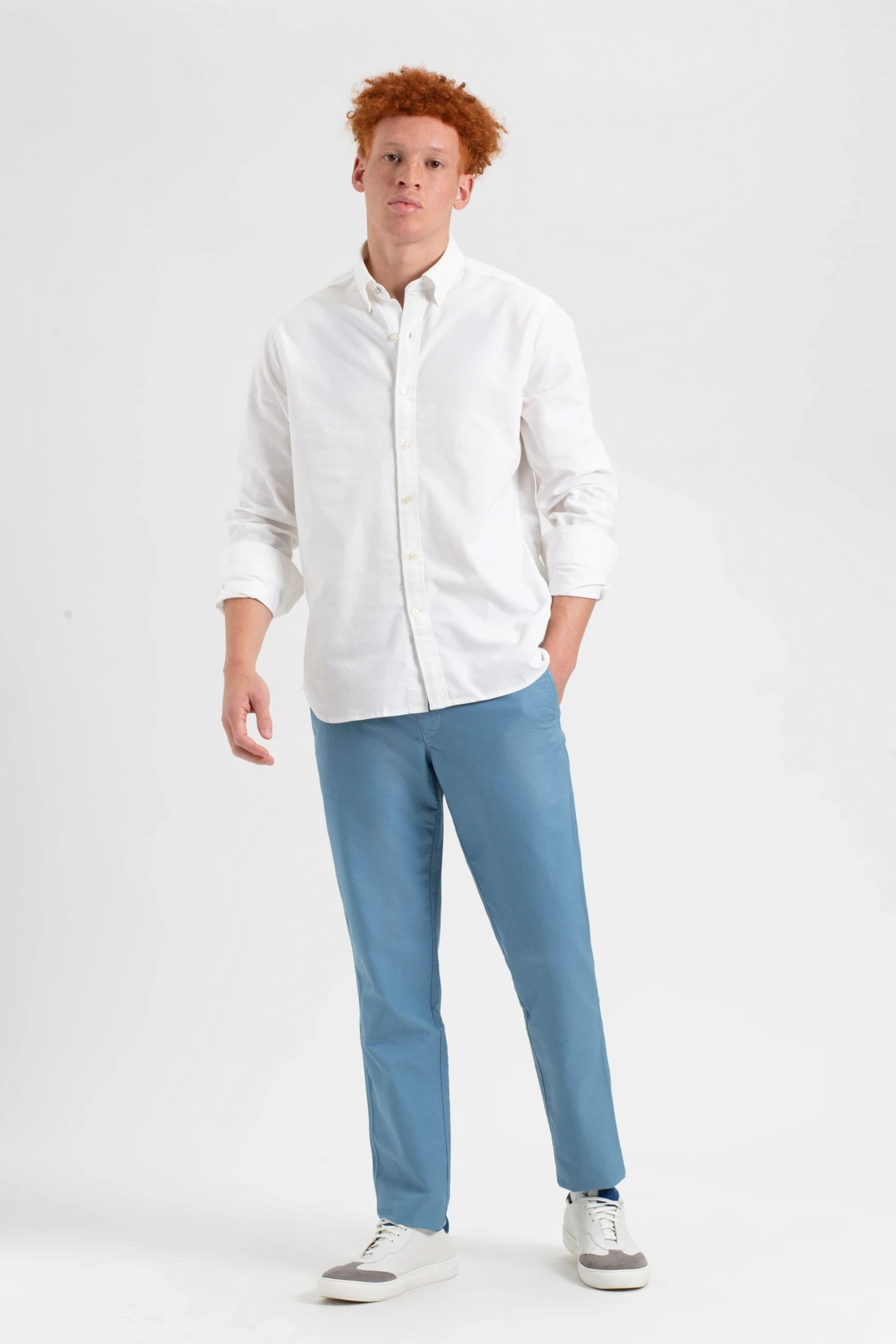 A new summer interpretation of the iconic Oxford. The St. Ives Resort Oxford Shirt is garment dyed, which achieves a super soft micro brushed hand feel. This shirt is styled with a rolled-up sleeve detail for those summer days at the beach. The button-down collar has our iconic two-finger collar in our best-selling mod fit. We kept the front clean of branding or embroideries, but our signature tab can be found at the side seam.
