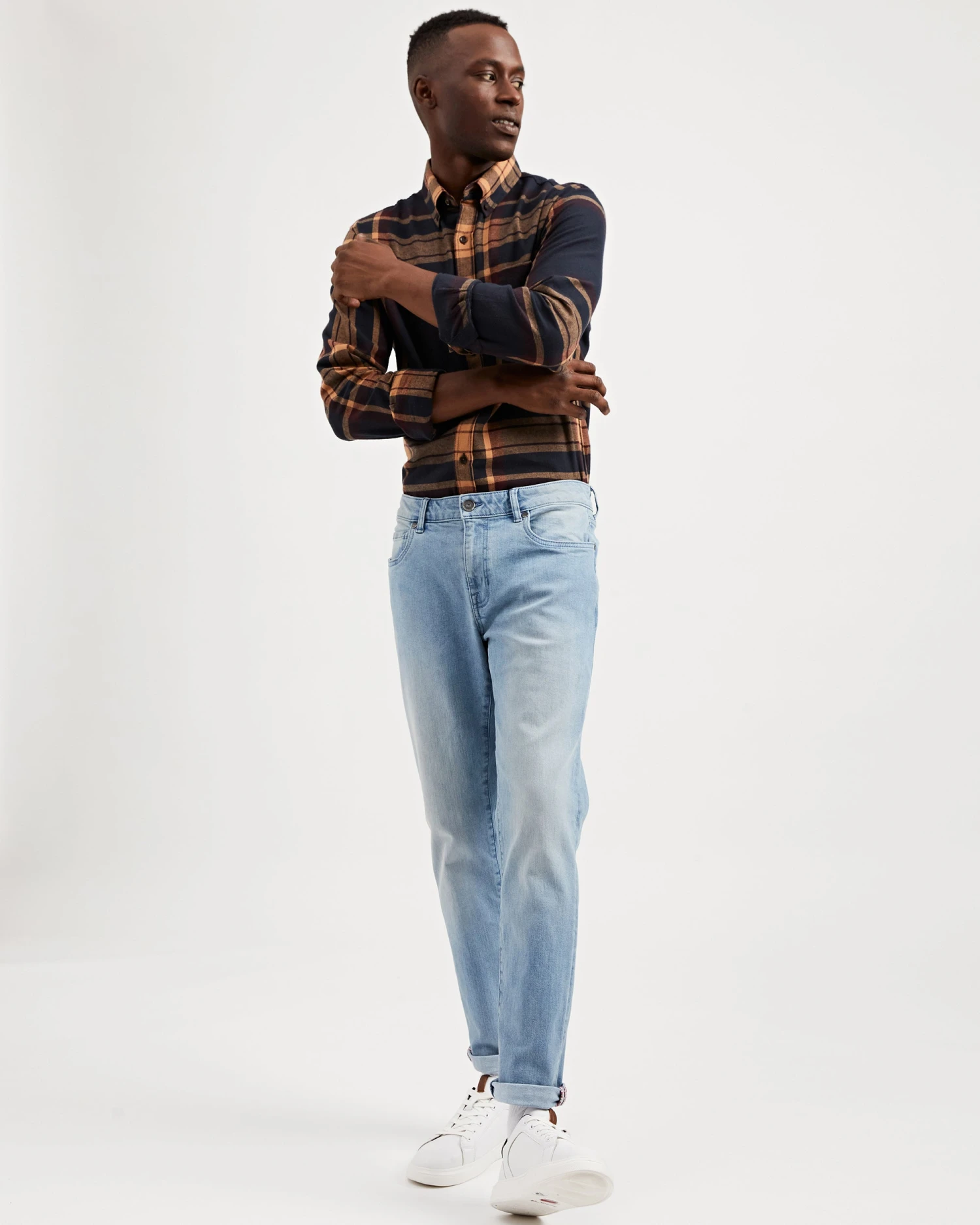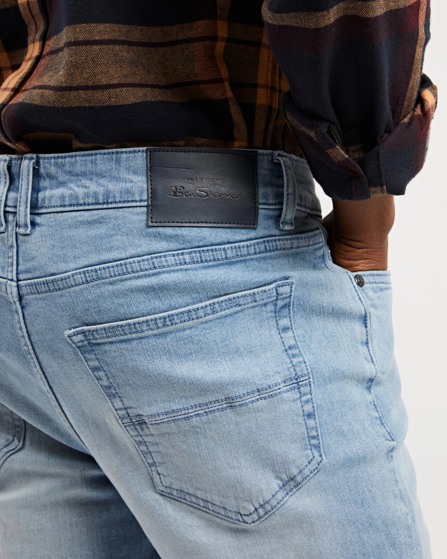 Perfect for everyday, these 5-pocket skinny jeans are a versatile rinse wash and feature five pockets, stitched back pockets, and Ben Sherman branded buttons.
