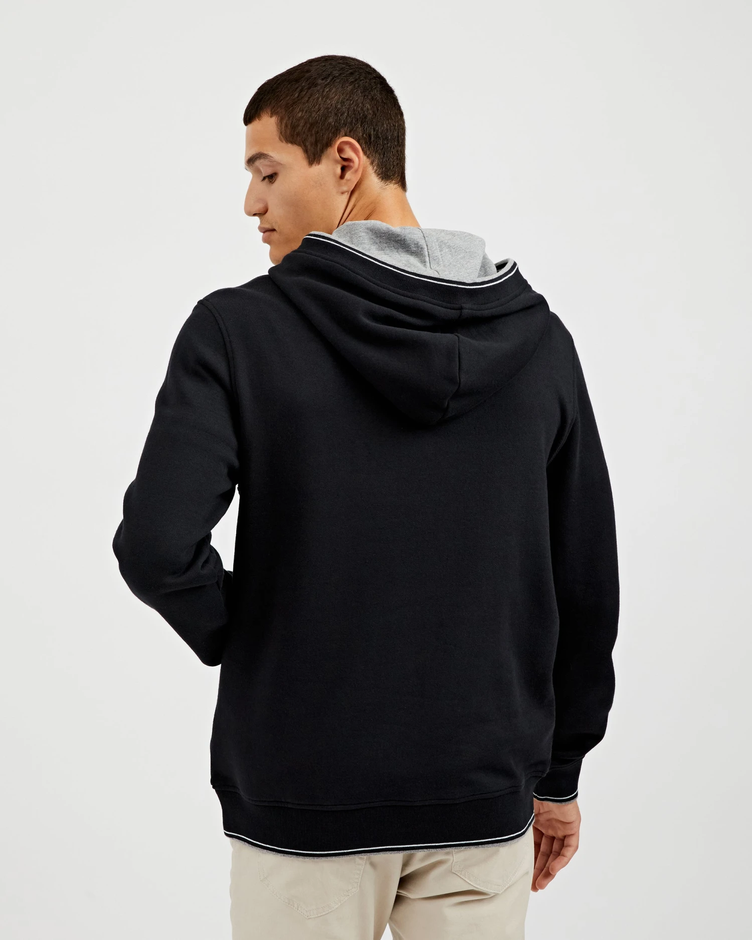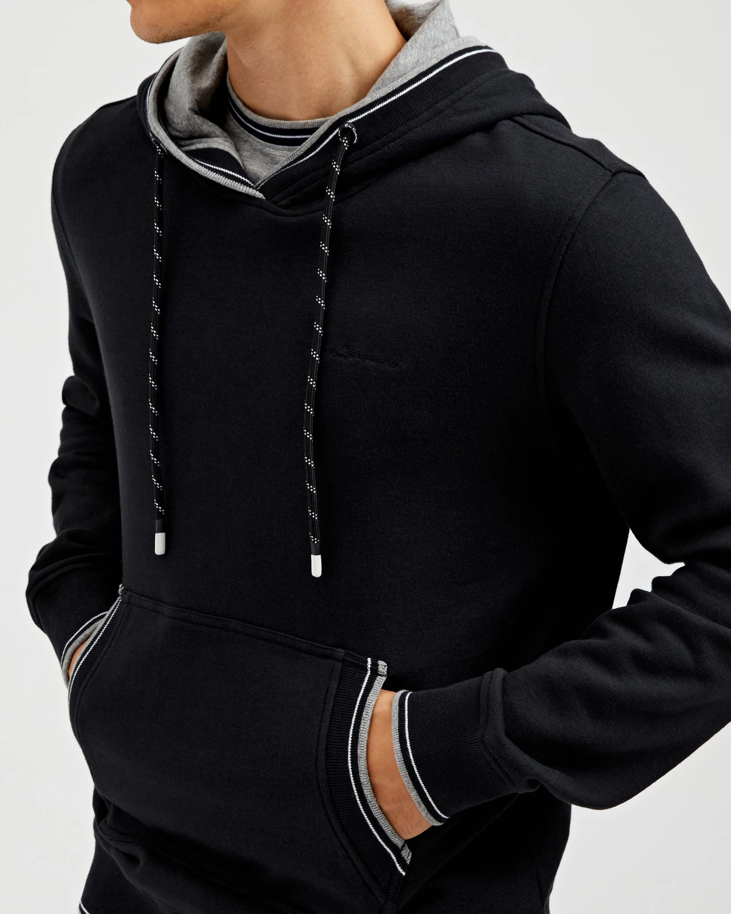 Perfect for the gym or lounging at home, this hooded sweatshirt features a contrast-tipped front pouch pocket and tonal branding on the chest.
