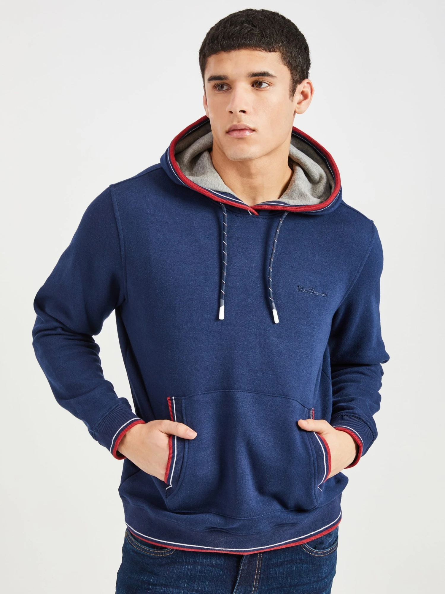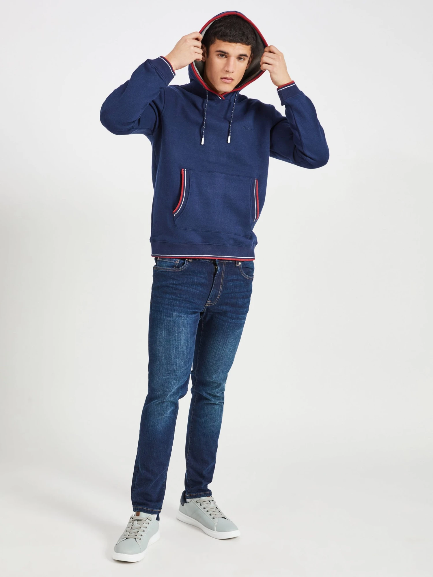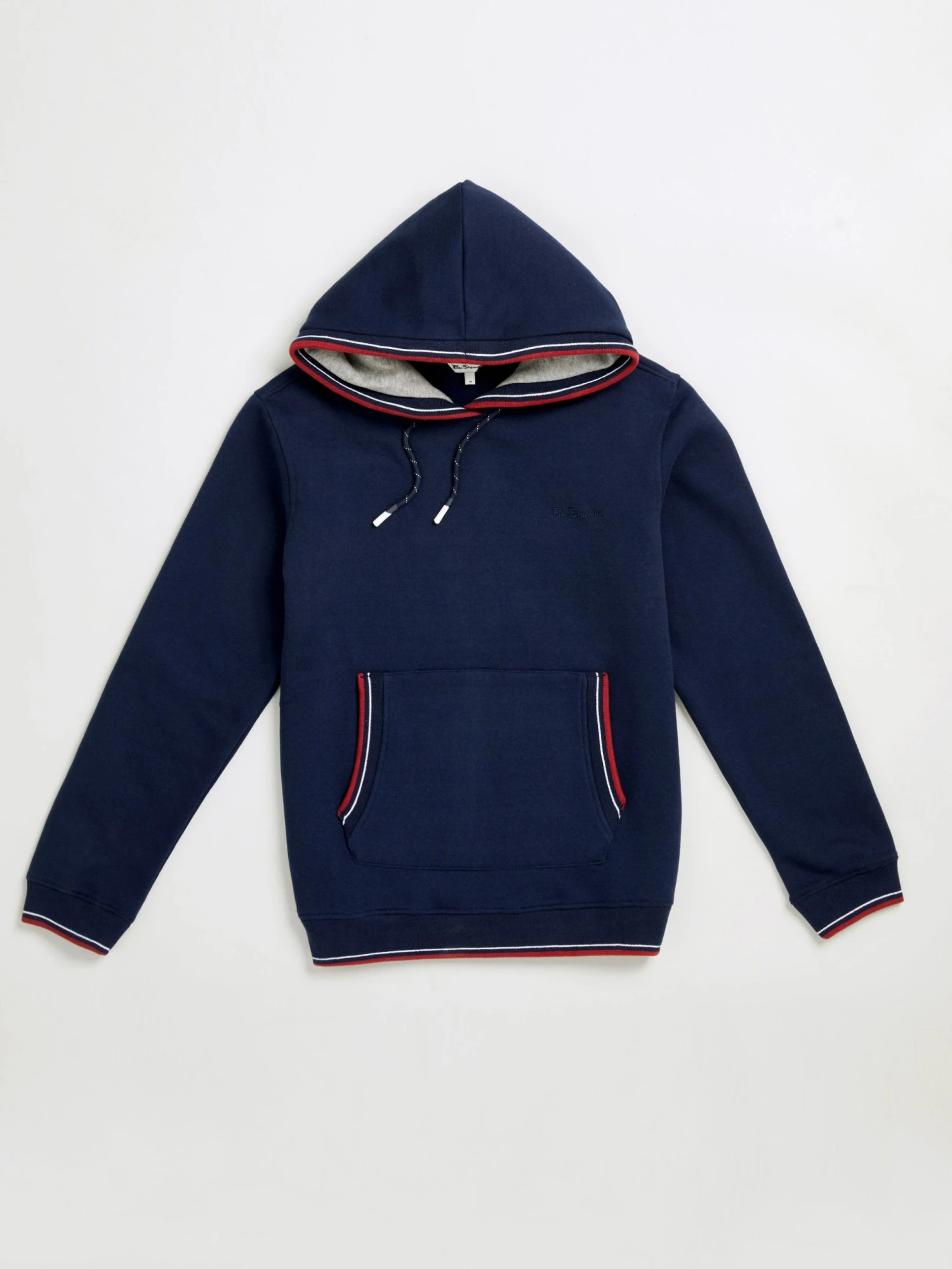 Perfect for the gym or lounging at home, this hooded sweatshirt features a contrast-tipped front pouch pocket and tonal branding on the chest.