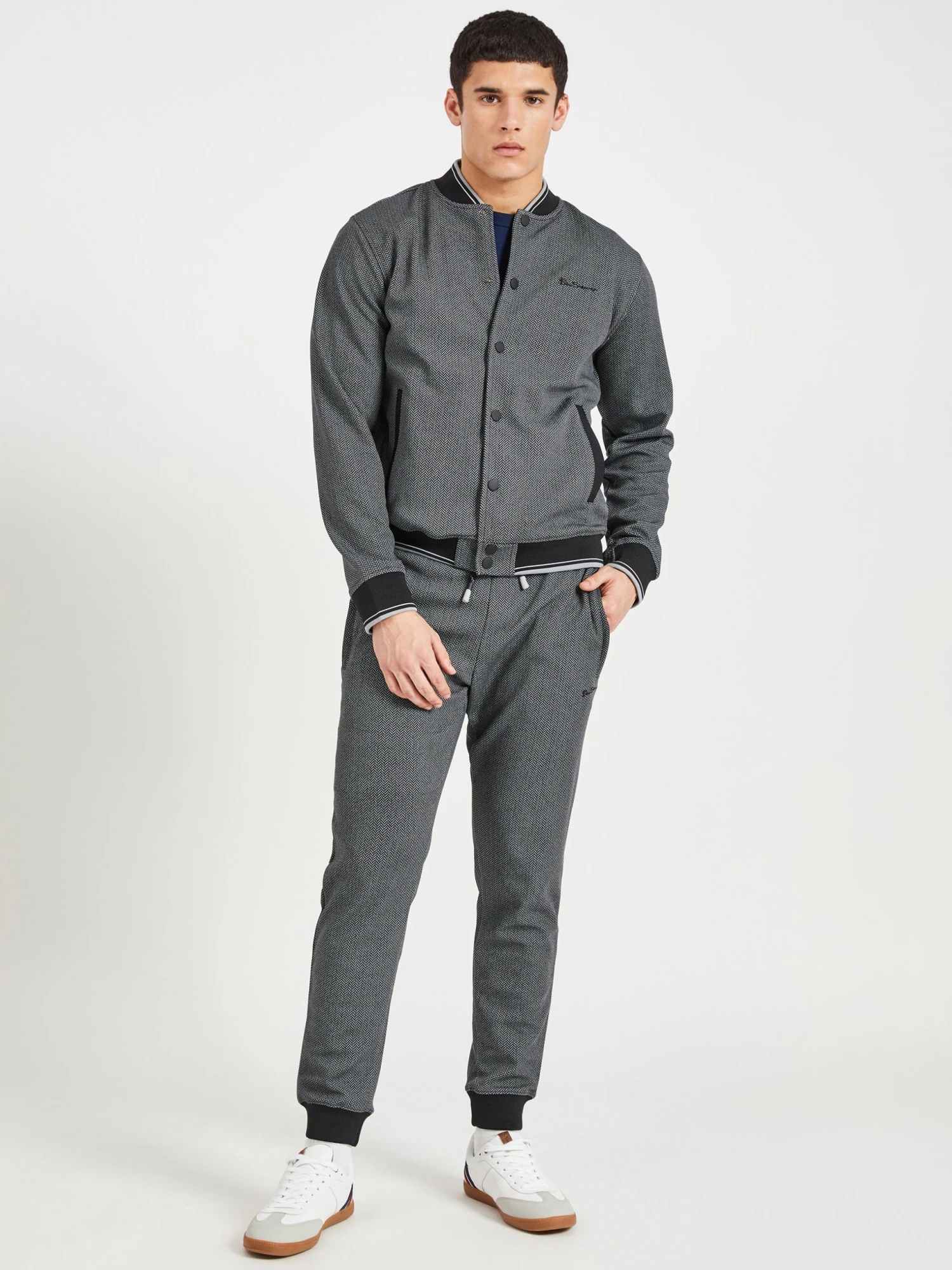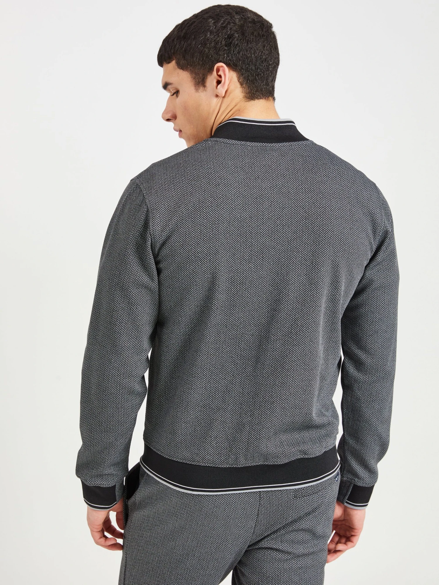 Herringbone pattern track jacket features a button-up front and is branded with the classic embroidered “Ben Sherman” logo on the chest.
