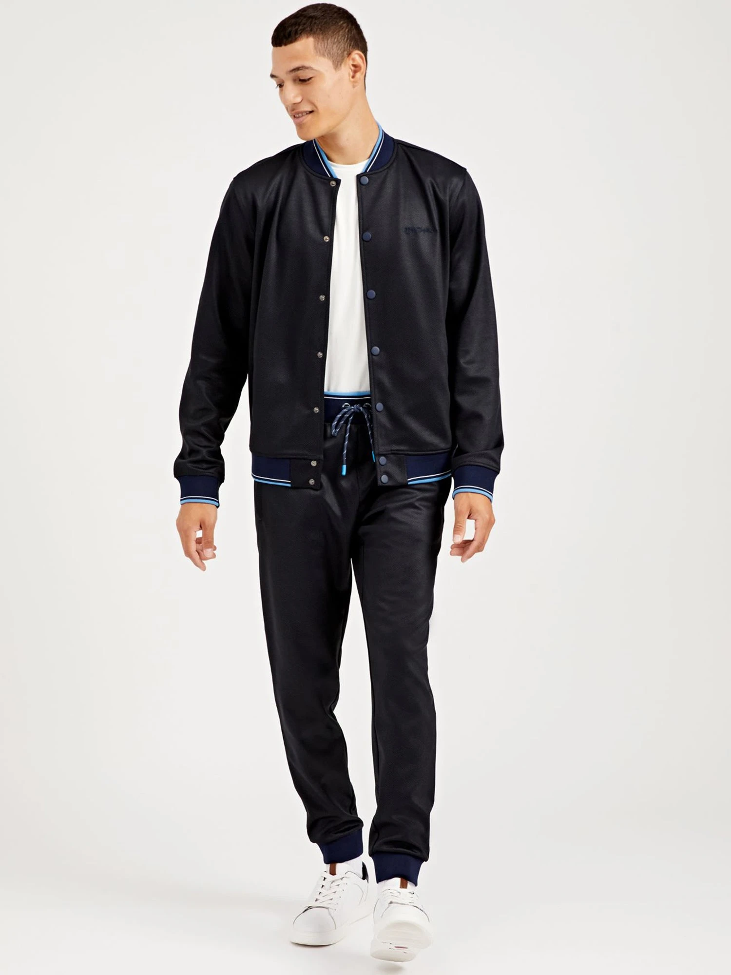 These track pants are a contemporary version of a sporty classic for the perfect balance of comfort and style. The herringbone pattern adds a fashion element while back pocket and drawcord give the bottoms additional functionality.