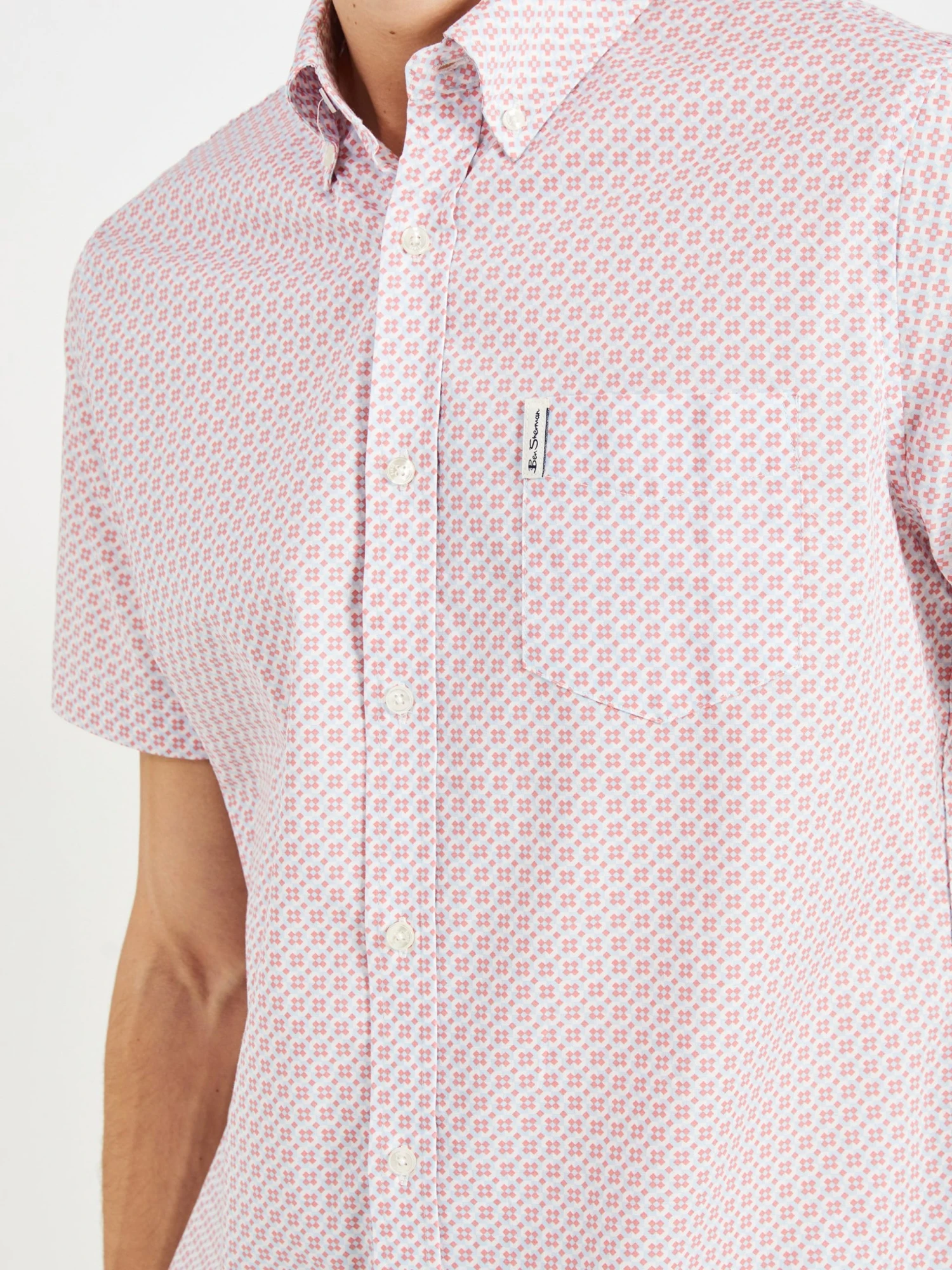 Men’s short sleeve, lightweight woven shirt in a light pink subtle check print; Perfect for the new season.