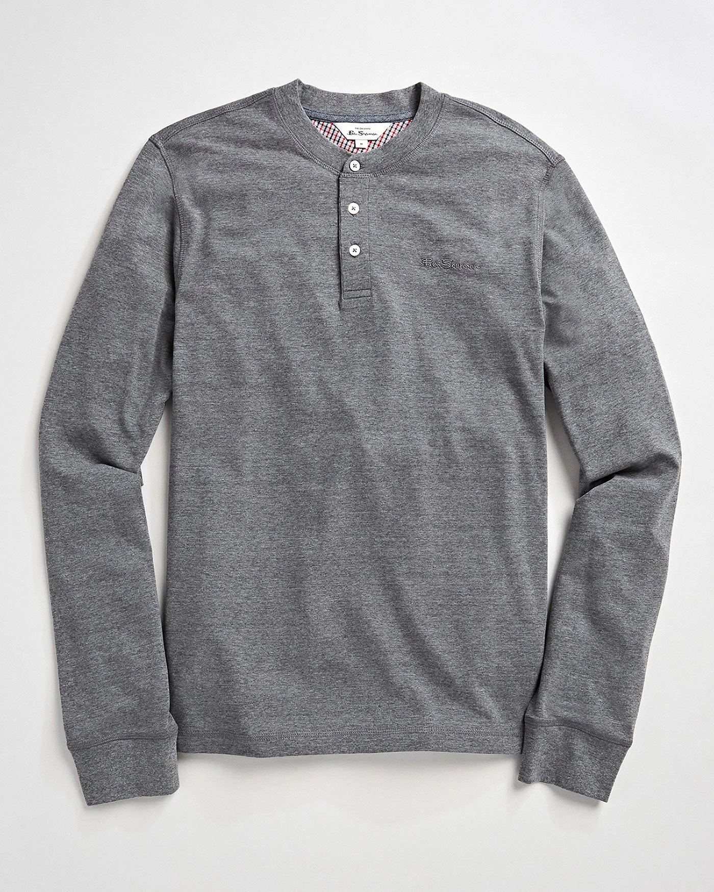 This long-sleeve henley t-shirt features contrasting stipe at the neck, sleeve, and waist.