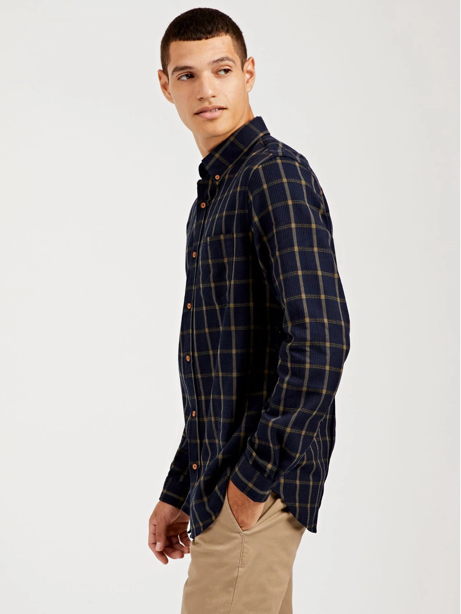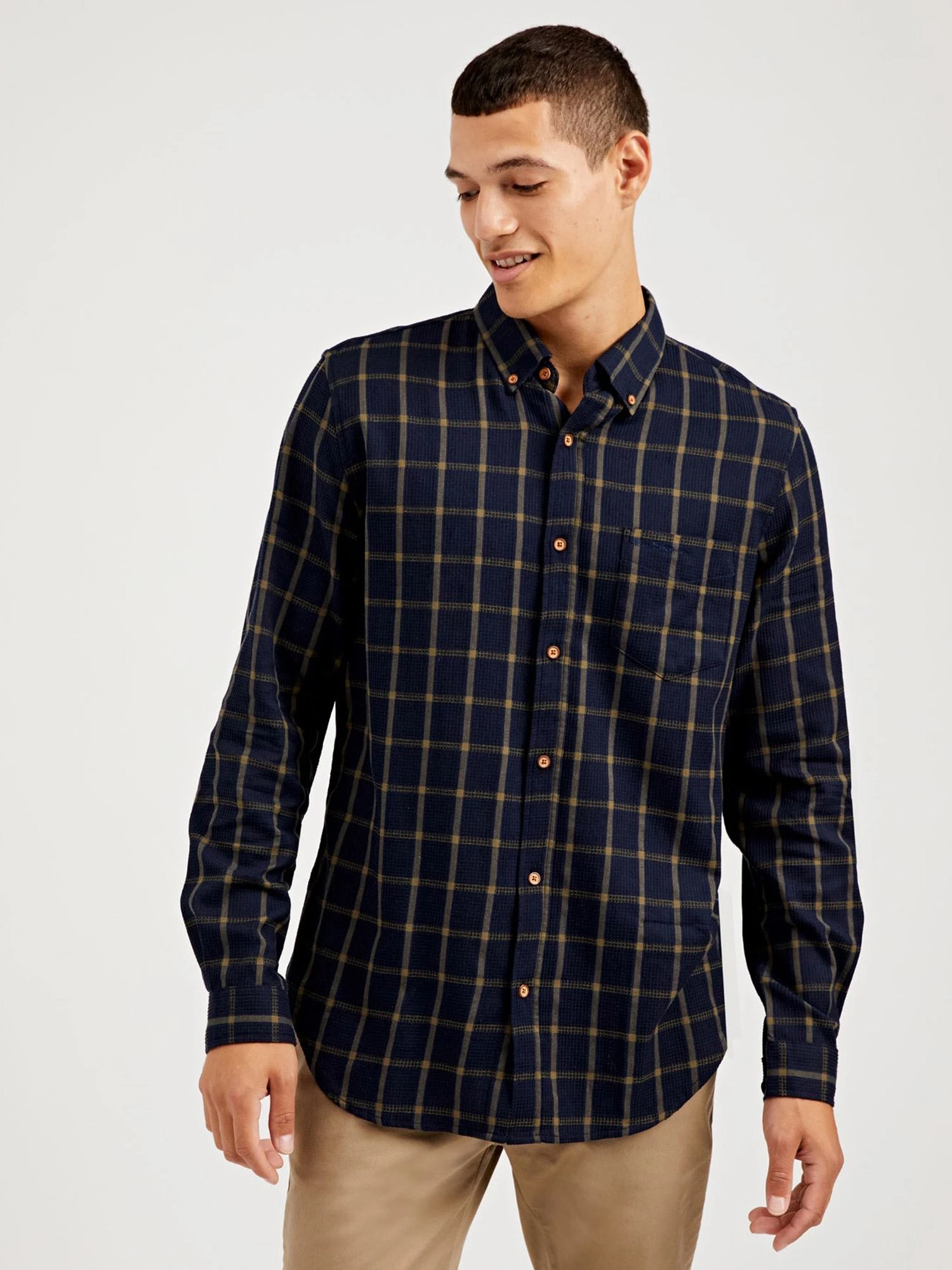 You can’t go wrong with a staple piece like this in your closet. This long-sleeve corduroy button-down comes in a plaid-check print and is made from 100% cotton.
