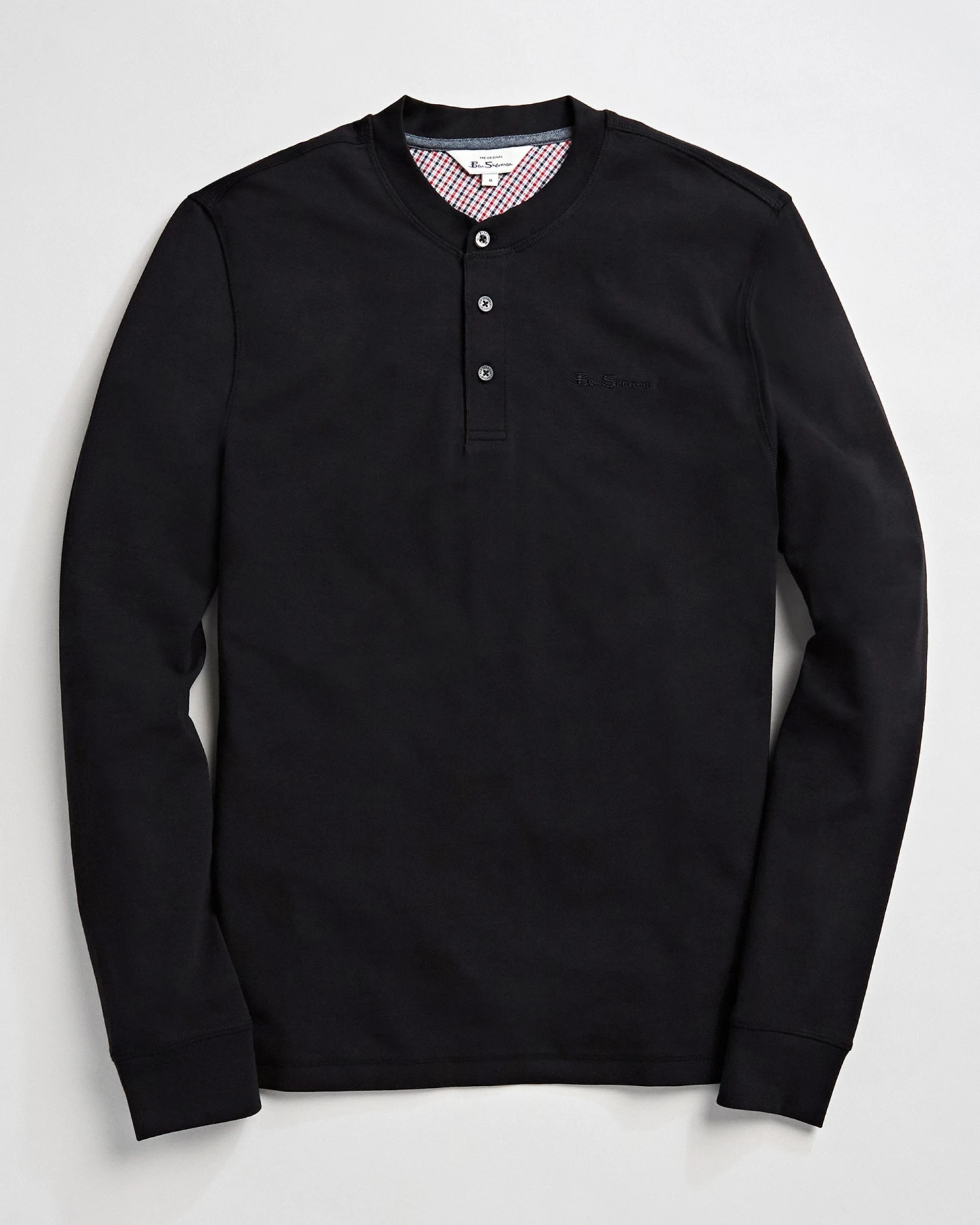 This long-sleeve henley t-shirt features contrasting stipe at the neck, sleeve, and waist.