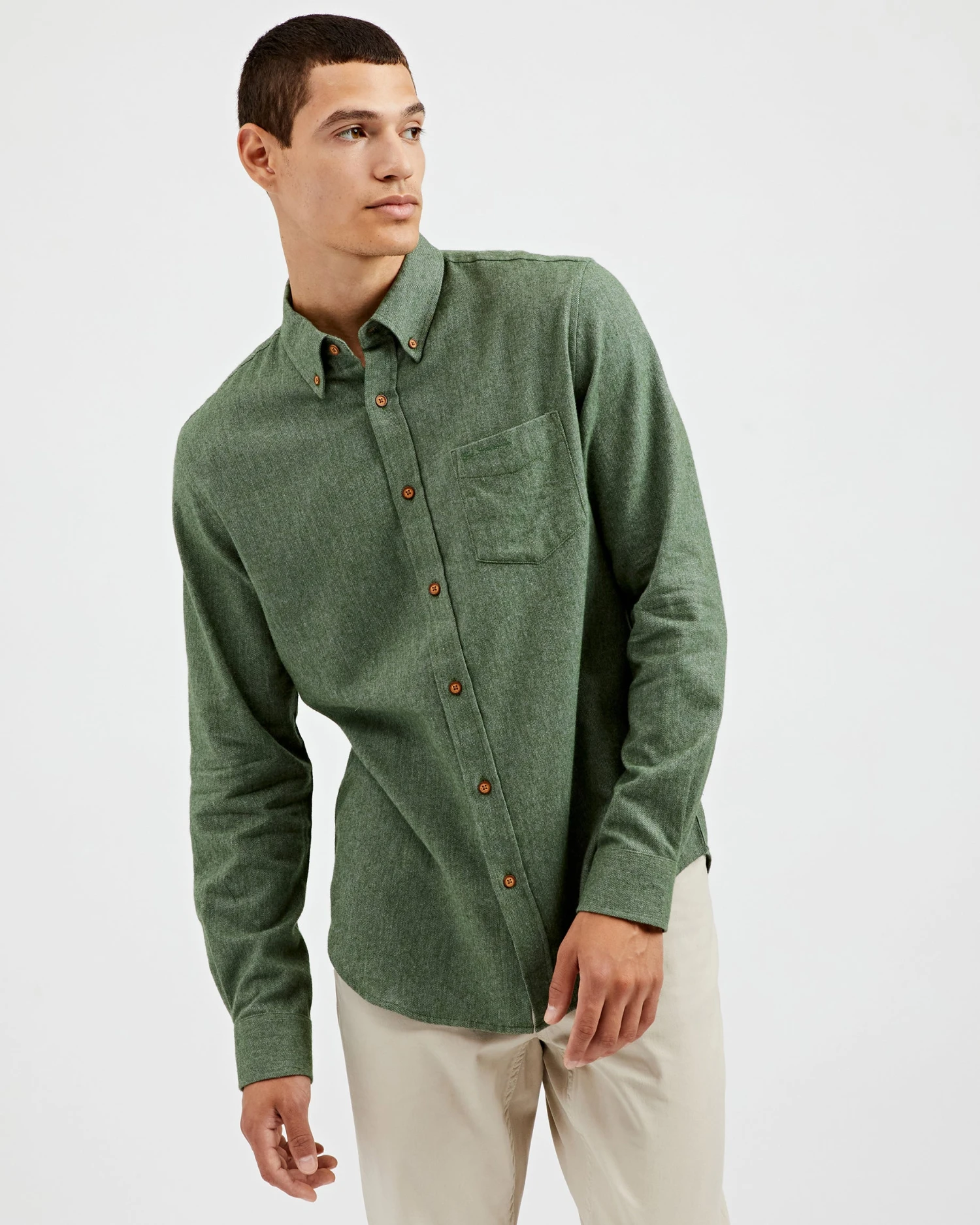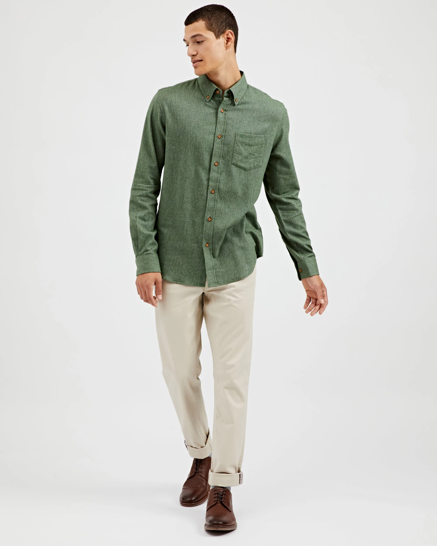 - Flannel button-down shirt