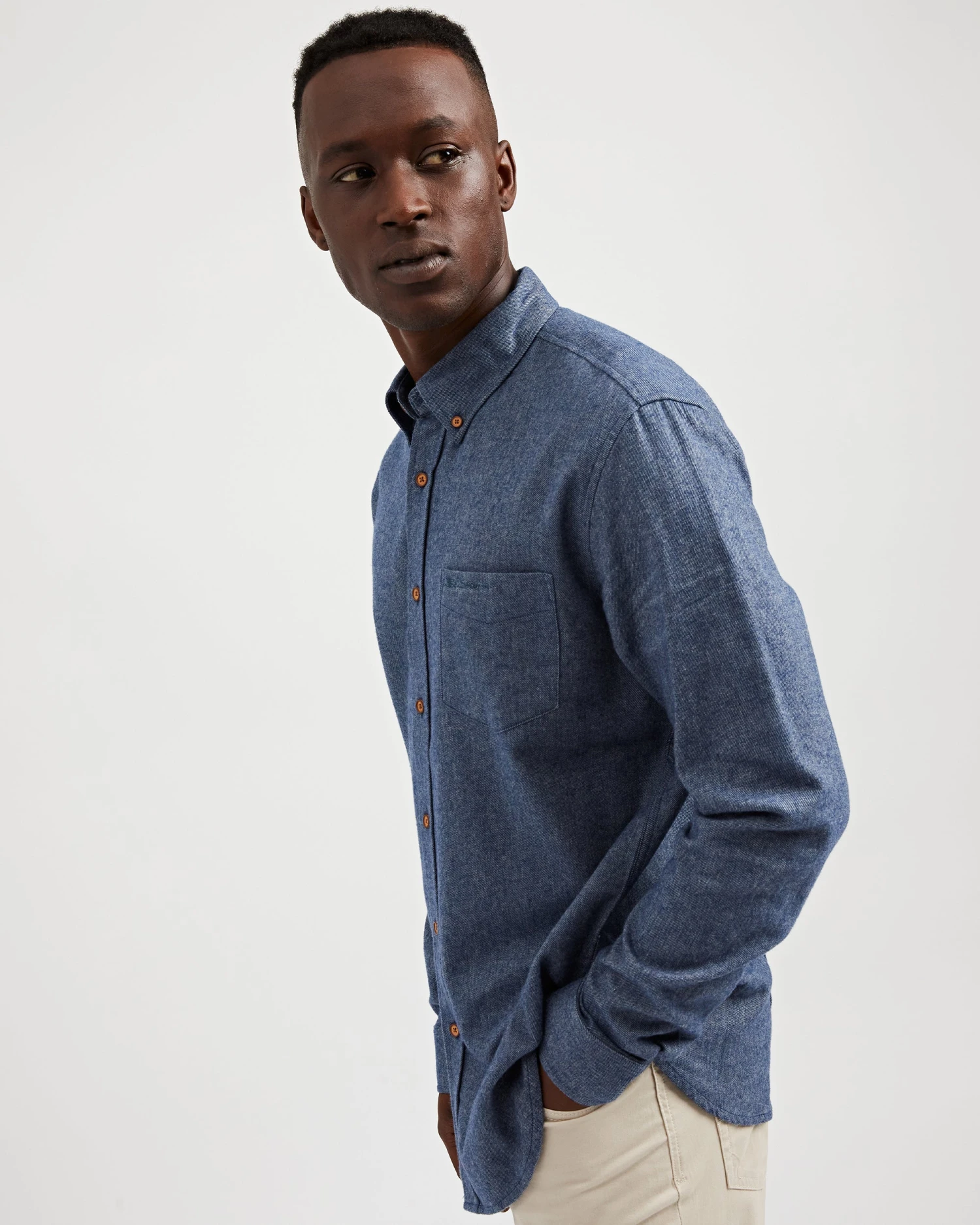 - Flannel button-down shirt
