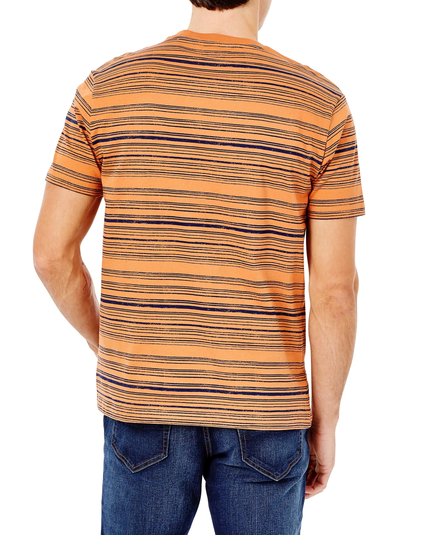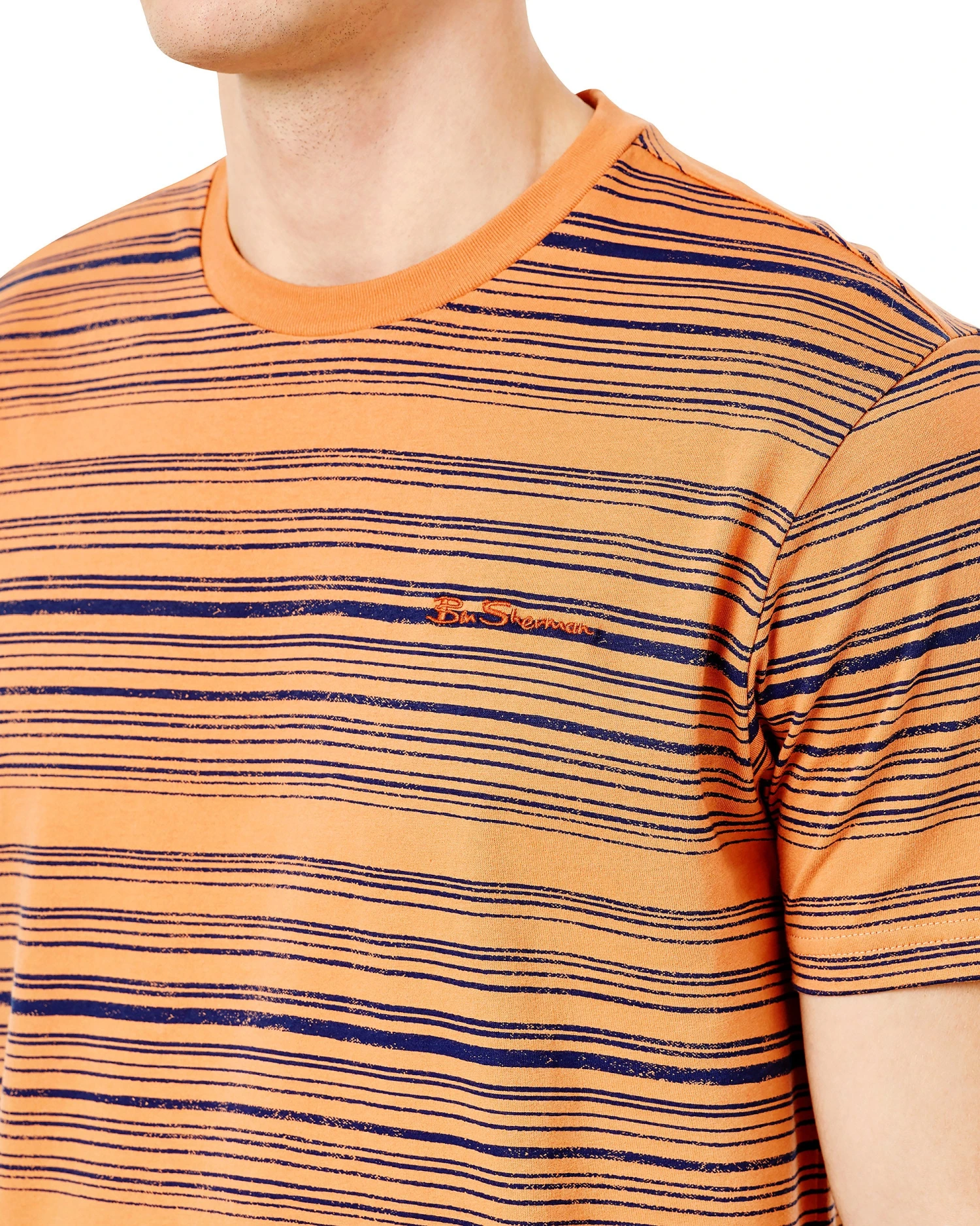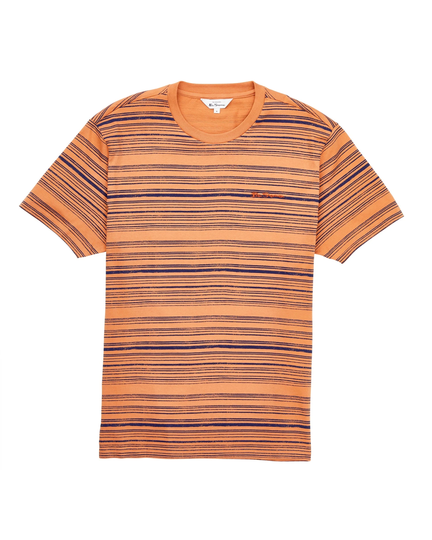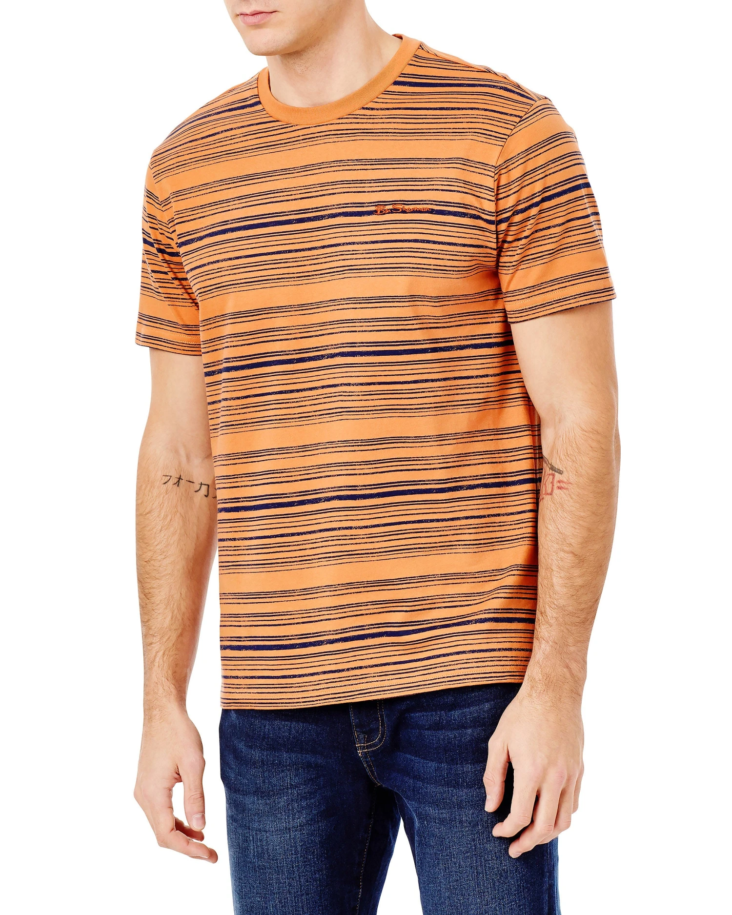 This crewneck tee features a horizonal distressed-stripe pattern and the Ben Sherman logo on the chest.