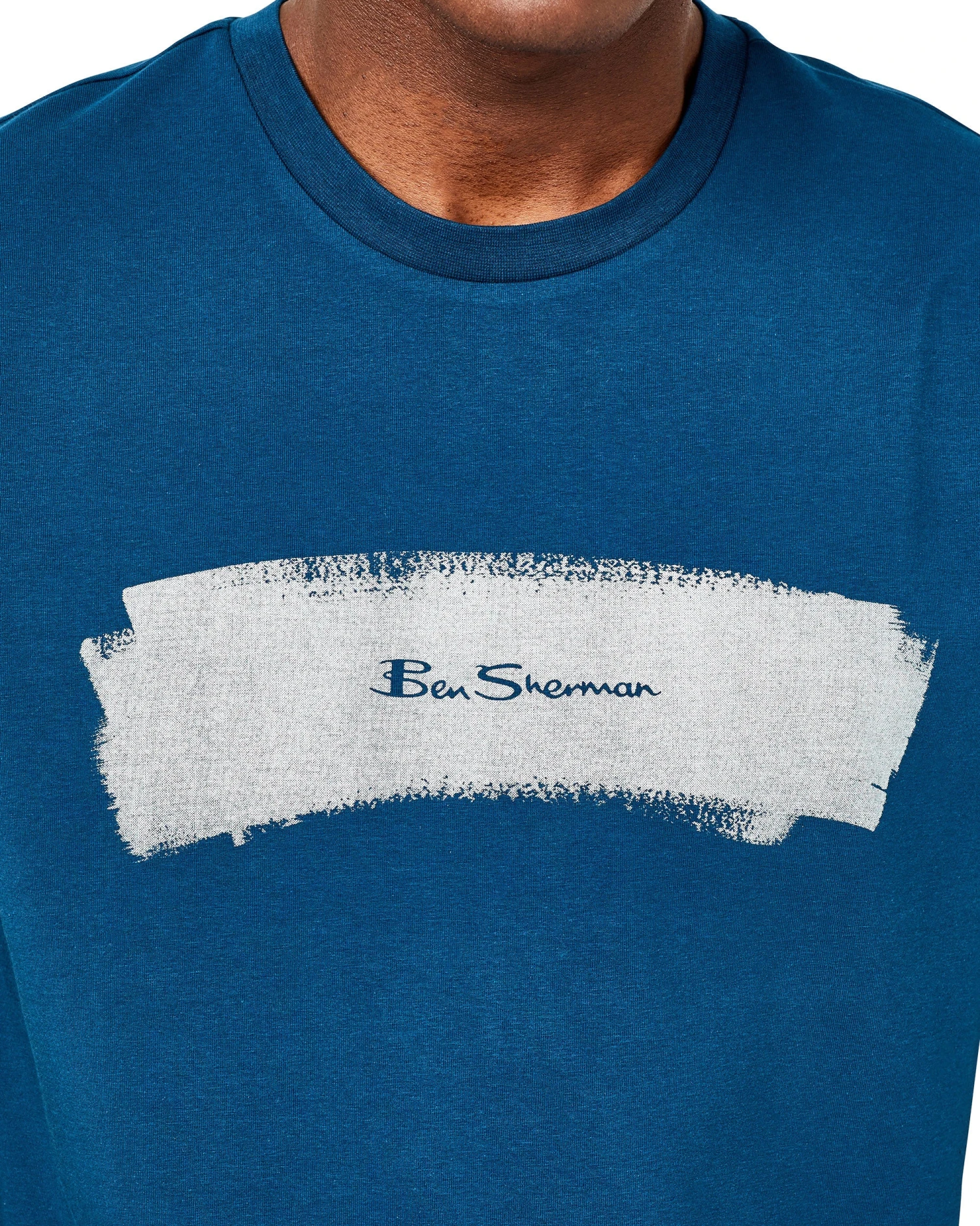 This printed tee is a crewneck style that features a painted-stripe graphic across the front.