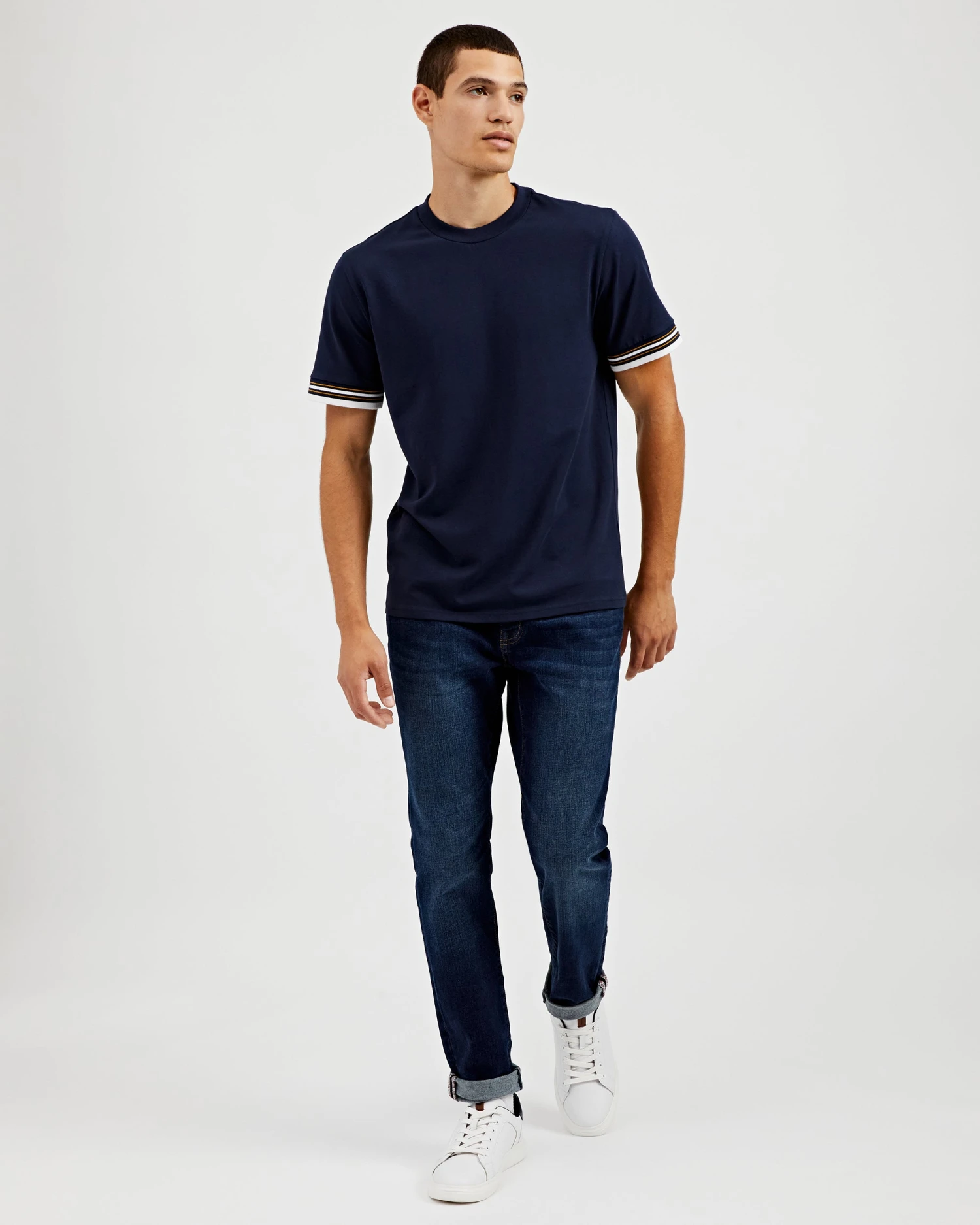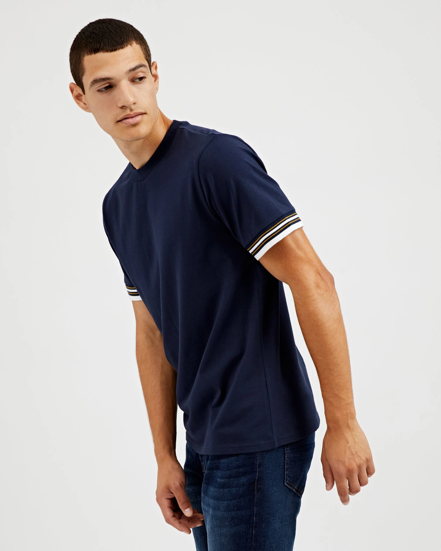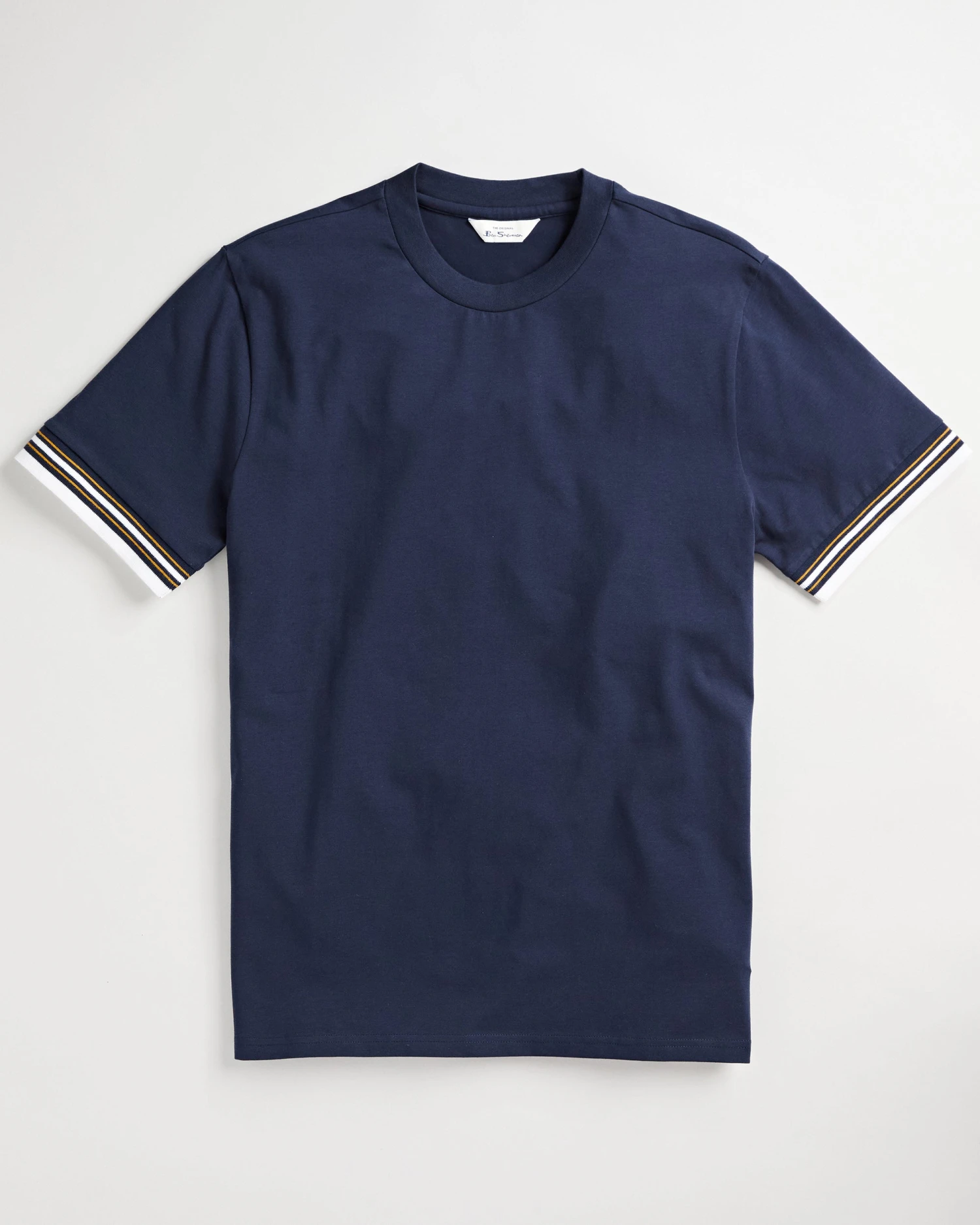This collegiate ringer tee is an homage to the classic vintage look, with its crewneck silhouette and contrast-tipped sleeves.