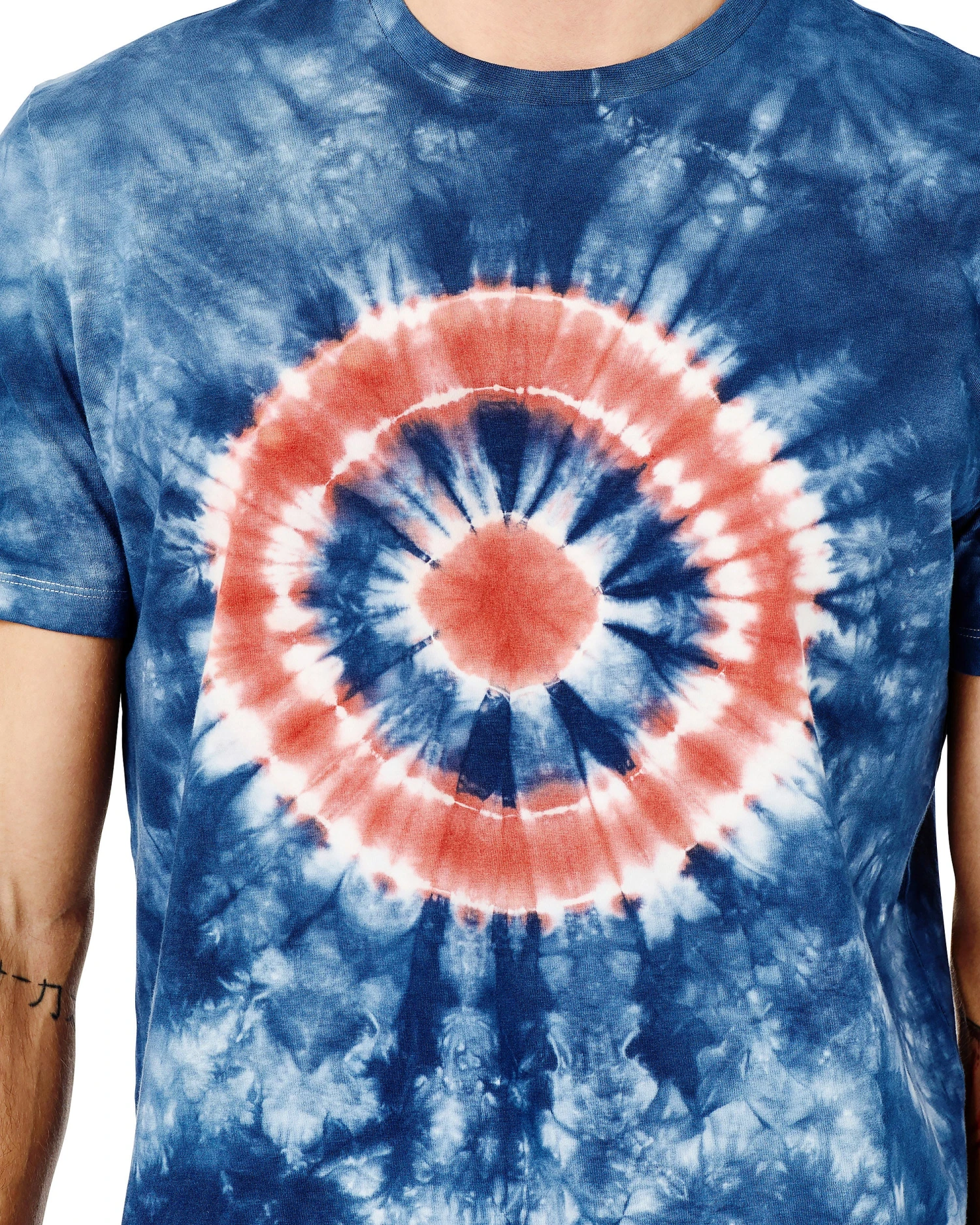 This tie-dyed printed tee is a crewneck style that features a target graphic.