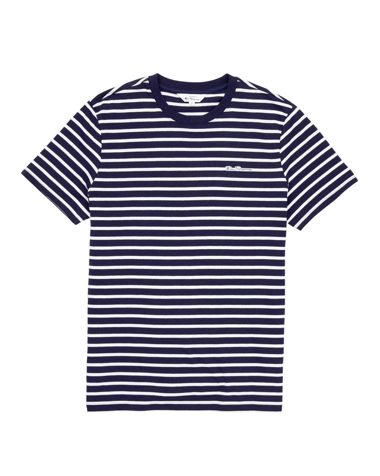 This crewneck tee features a horizontal-stripe pattern and the Ben Sherman logo on the chest.