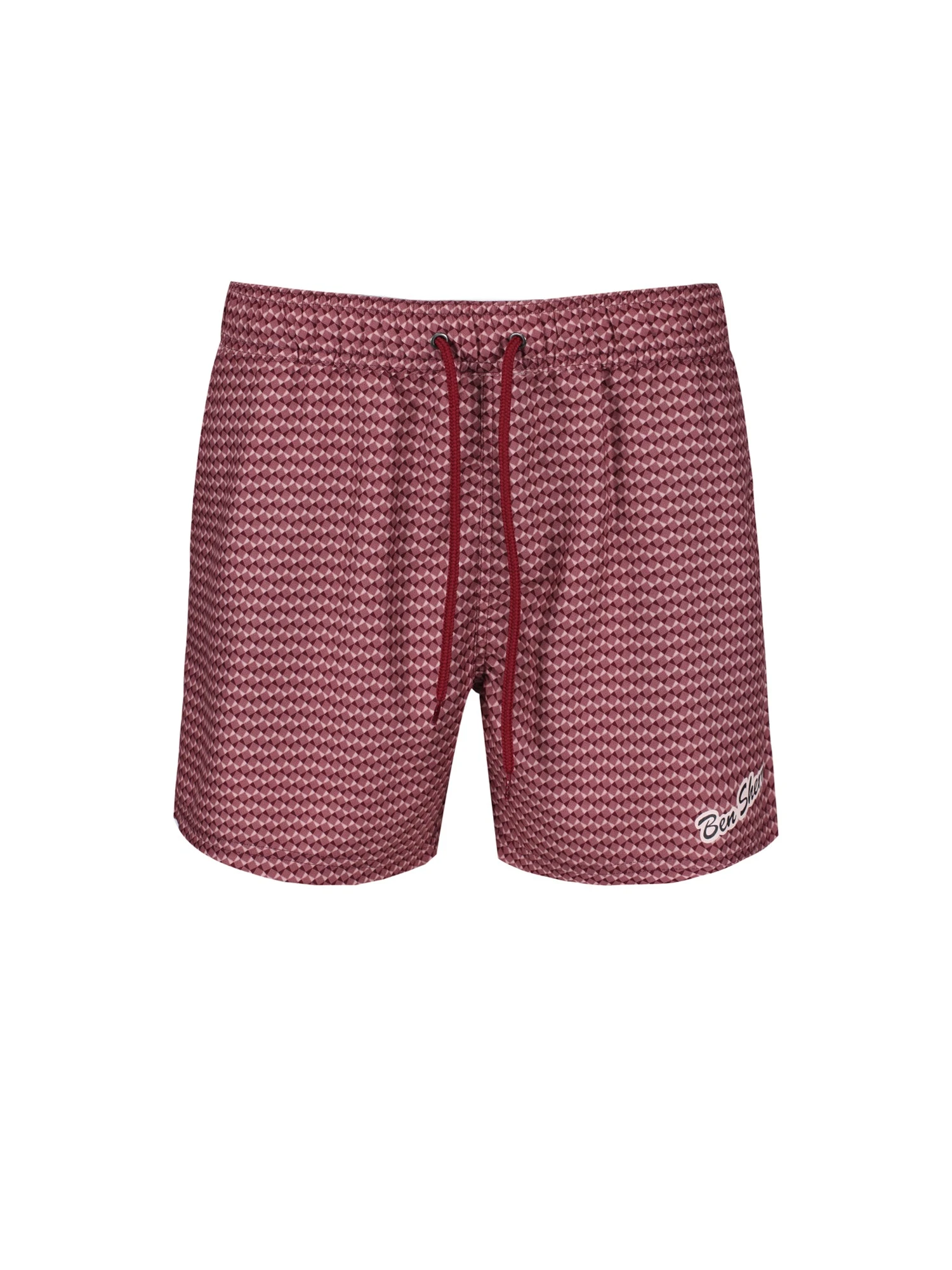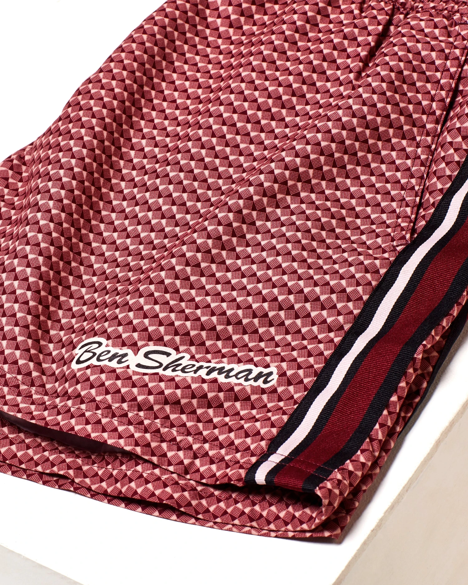 Classic swim shorts with an elasticated waist and drawstring, mesh lining, and versatile pockets, is elevated with signature Ben Sherman styling, including a pink-and-wine geo print and script logo. Our Mandalay trunks are ideal for the pool, beach or summer casual wear.