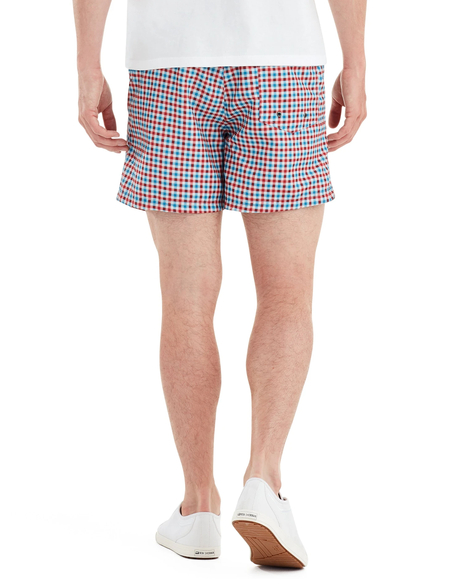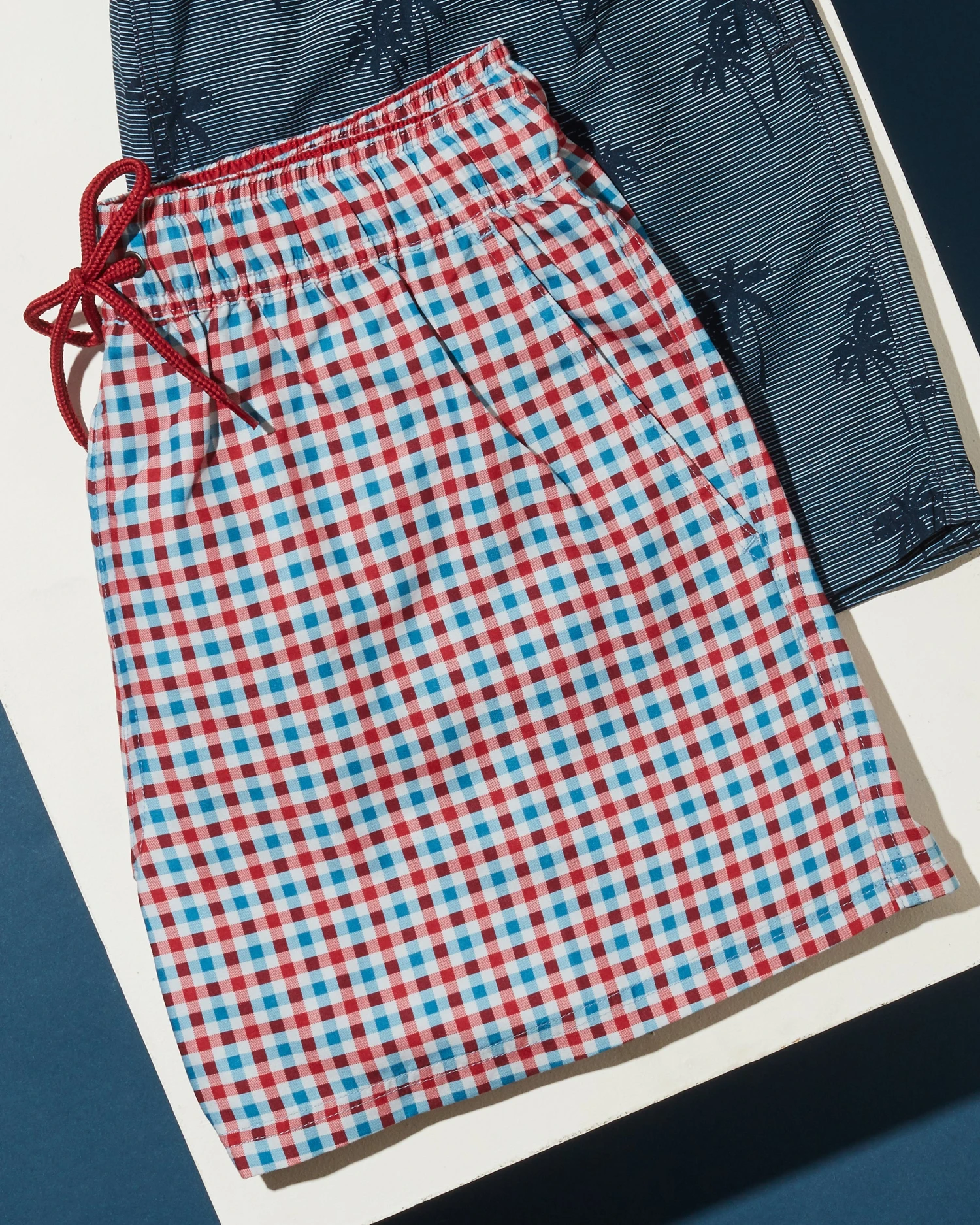 Get summer ready with our Palm Beach printed swim short. These classic swim trunks with an elasticated waistband for comfort pop in our signature gingham check. Pockets make it easy to stash your essentials while you stroll shoreside.