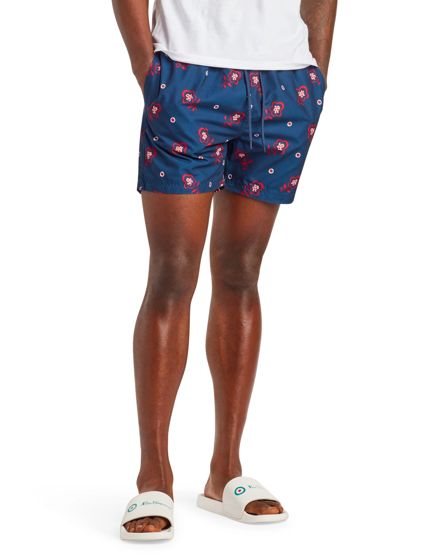 Make a stylish statement this season in our floral printed Turquoise Bay swim shorts. These classic swim trunks feature an elasticated waist with drawstring, traditional mesh lining, versatile pockets, and the iconic Ben Sherman branding.