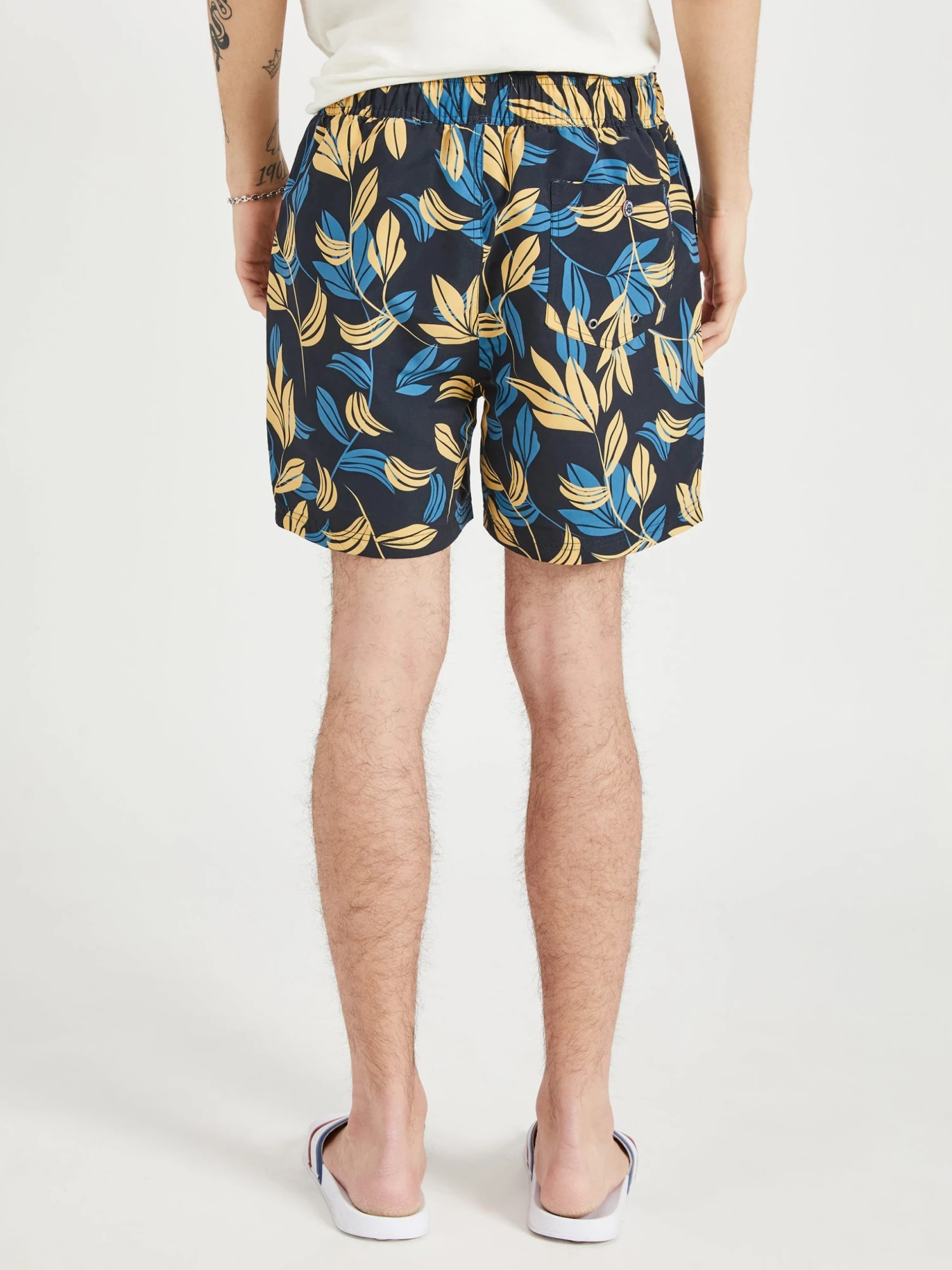 The Bowman Printed Swim Short is a classic swim trunk with an elasticated waistband with drawstring and three pockets to stash your essentials.