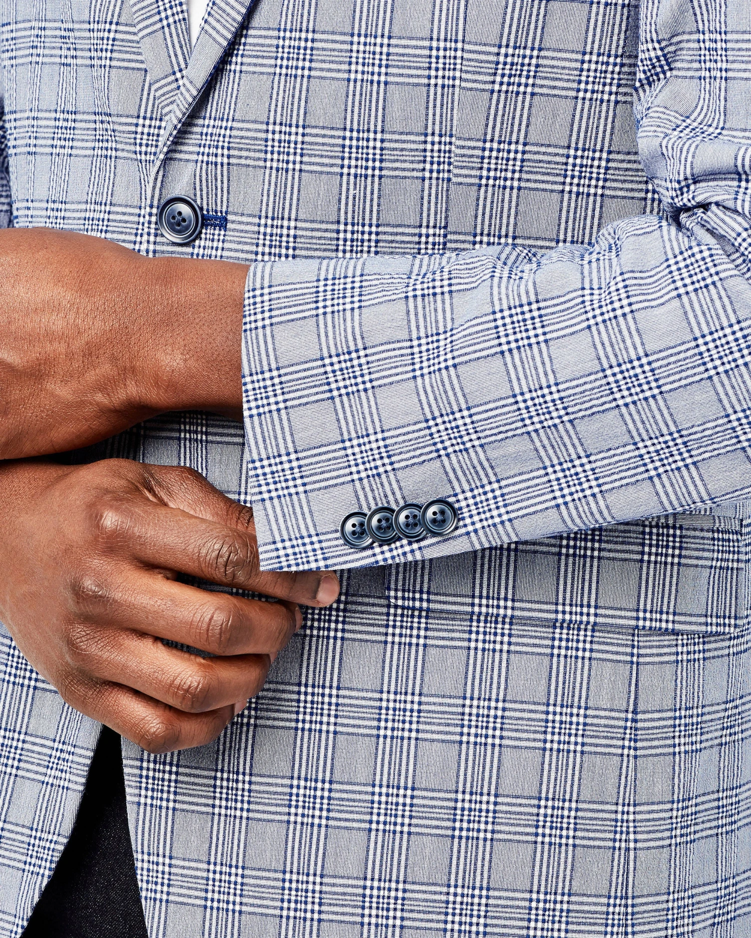 Add a statement piece to your wardrobe with our Crown check jacket. A classic single-breasted style with double-button fastening in front, Crown is the ideal sports blazer to dress up or down. Pair with black, grey or neutral trousers to complete the look.