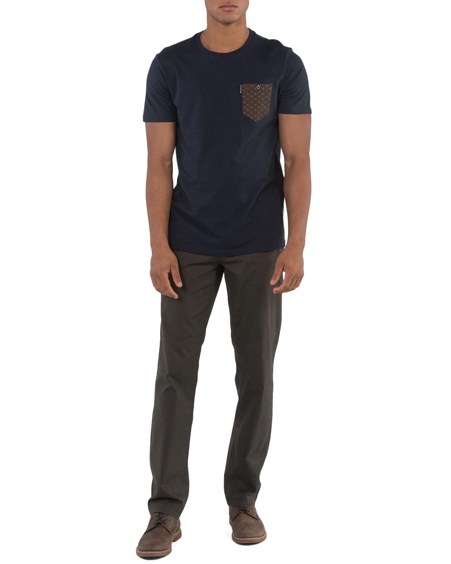 A classic pocket tee gets a modern update with an all-over floral target printed pocket.
