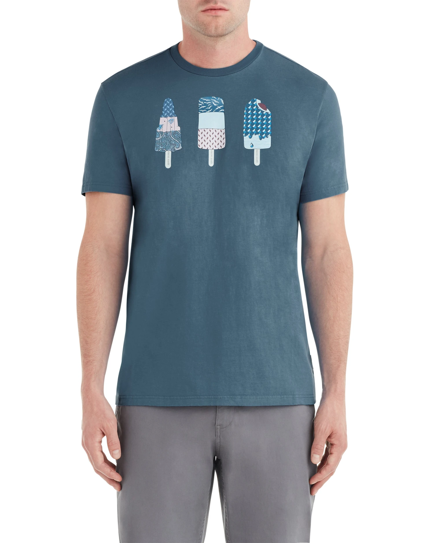 Our ice-lollies graphic tee features a whimsical ice cream print.