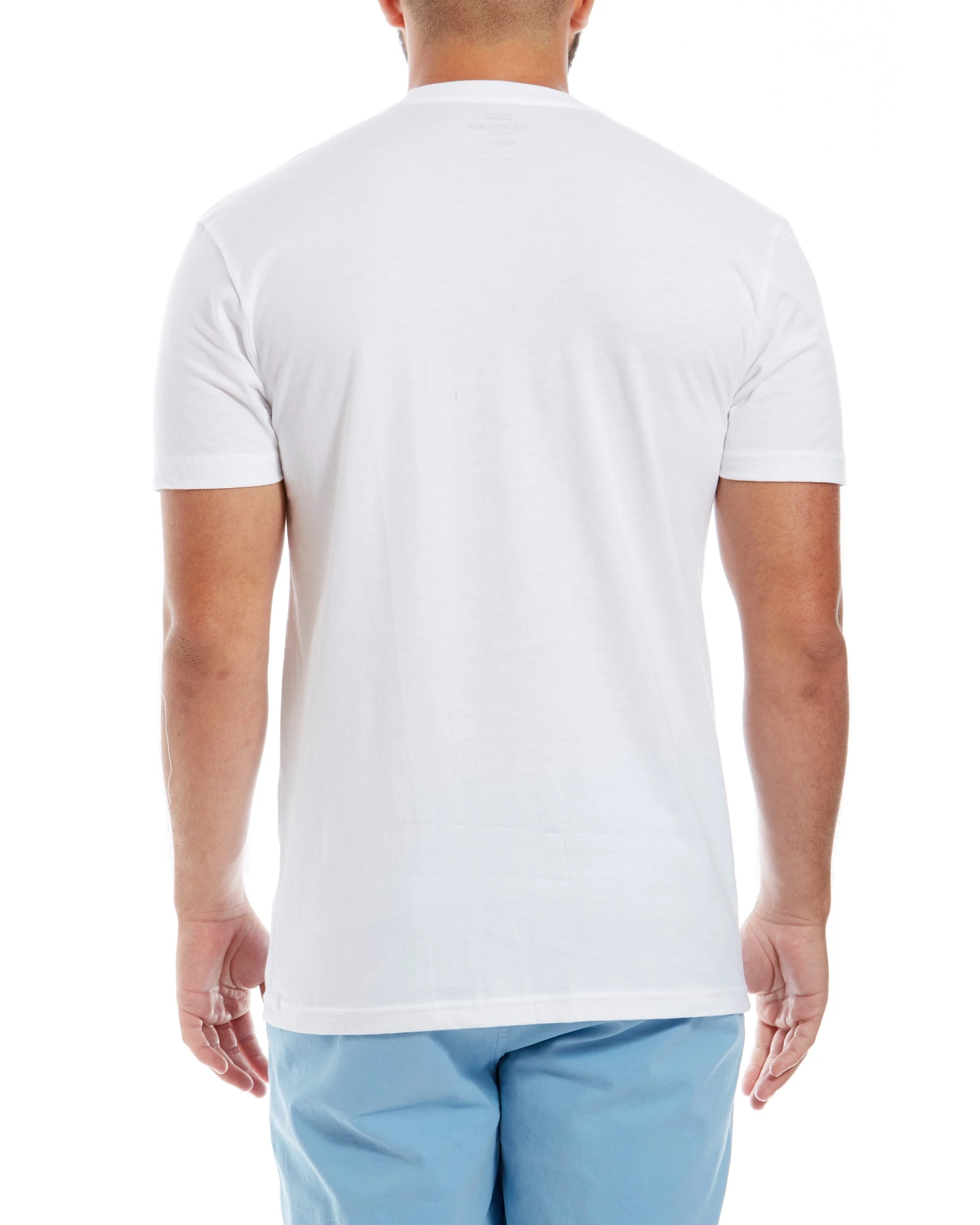 This cool graphic tee has a retro-inspired record print in shades of blue.