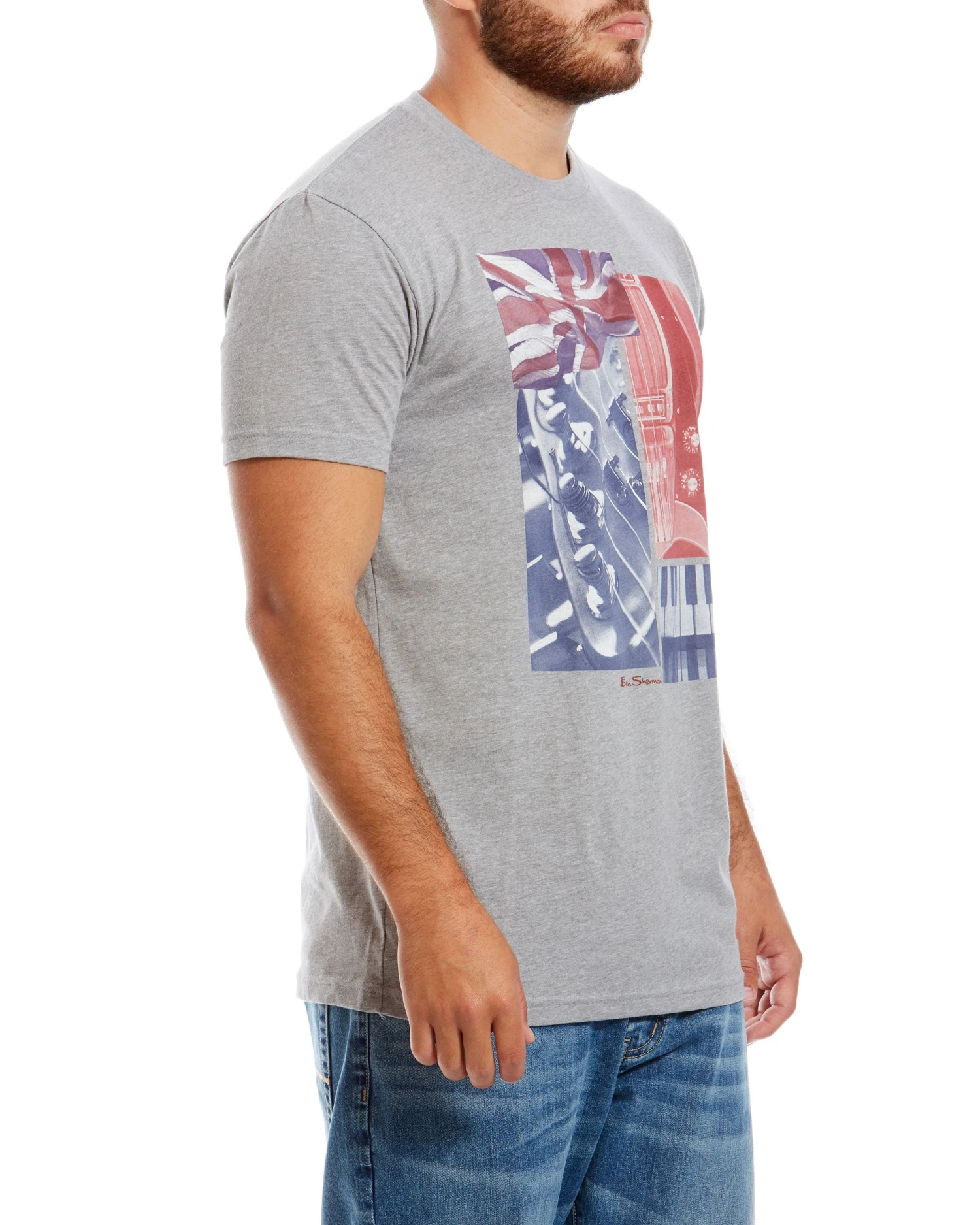 Perfectly paired with jeans or chinos, this effortlessly cool graphic tee stands out with a musical collage print.