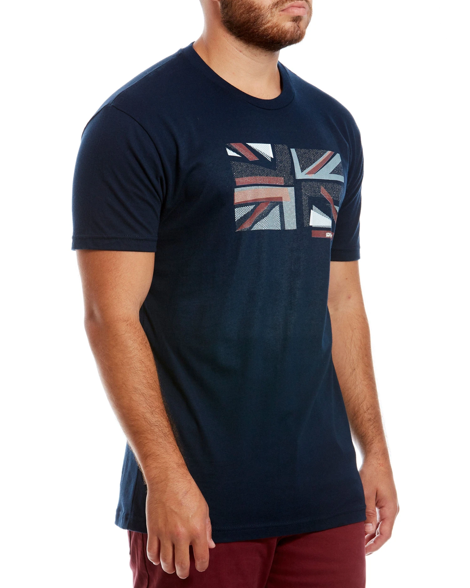 Inspired by our English roots, this crewneck graphic t-shirt features a Union Jack collage print.