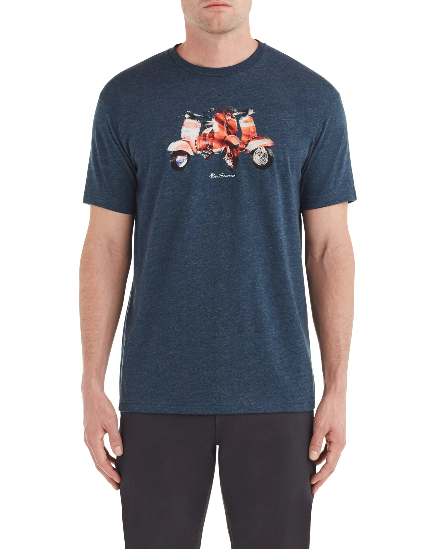 A superimposed graphic of the Union Jack flag on scooters sets this t-shirt apart.