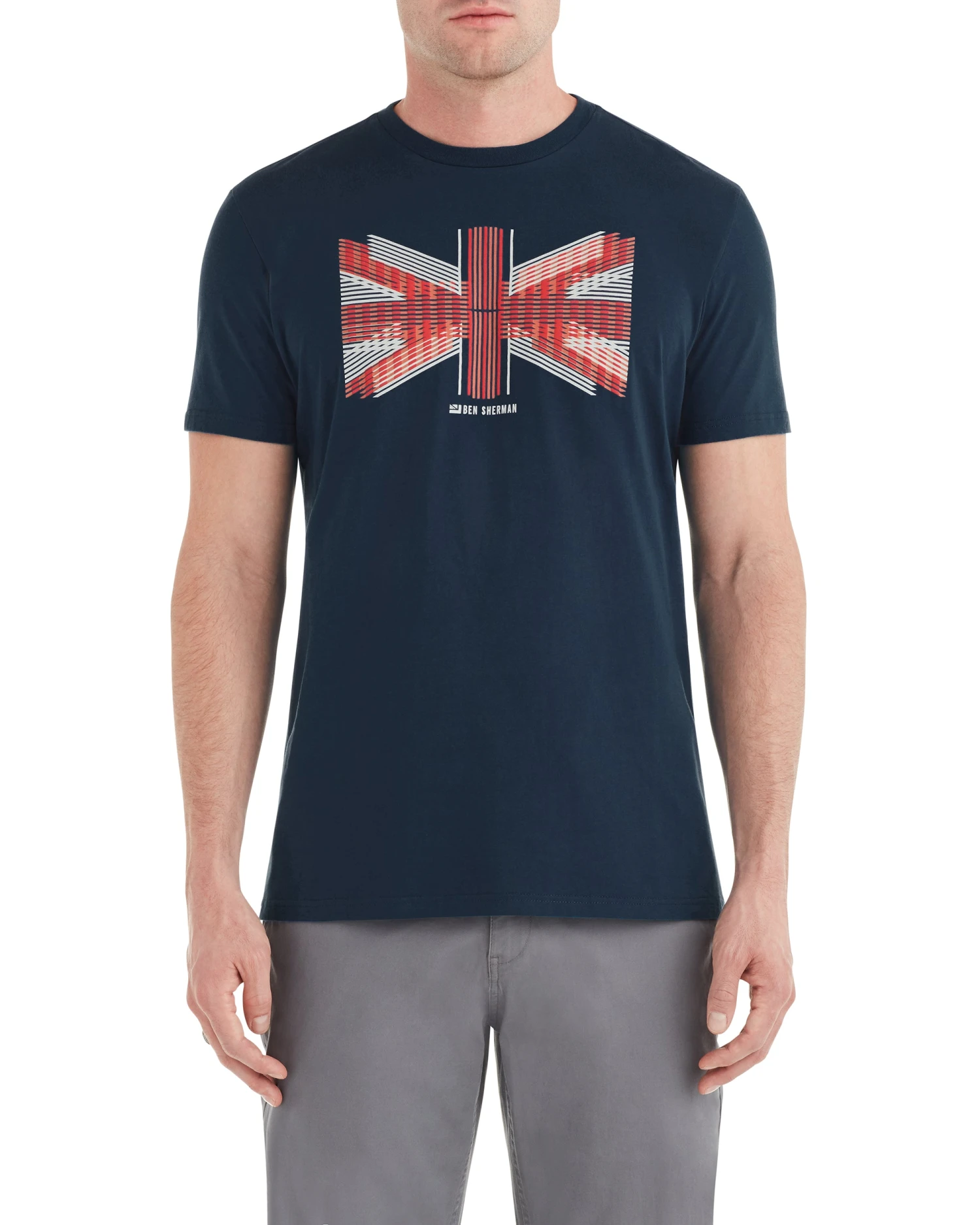 This graphic tee combines the look of both a Union Jack flag with a checker flag for a cool, modern style.